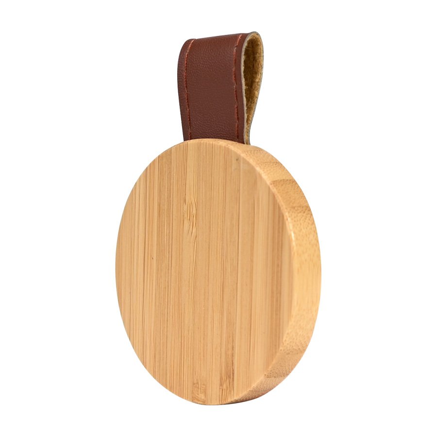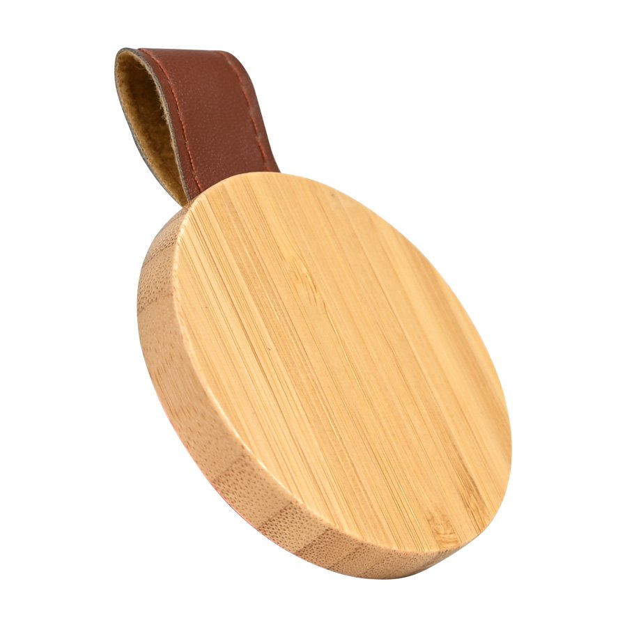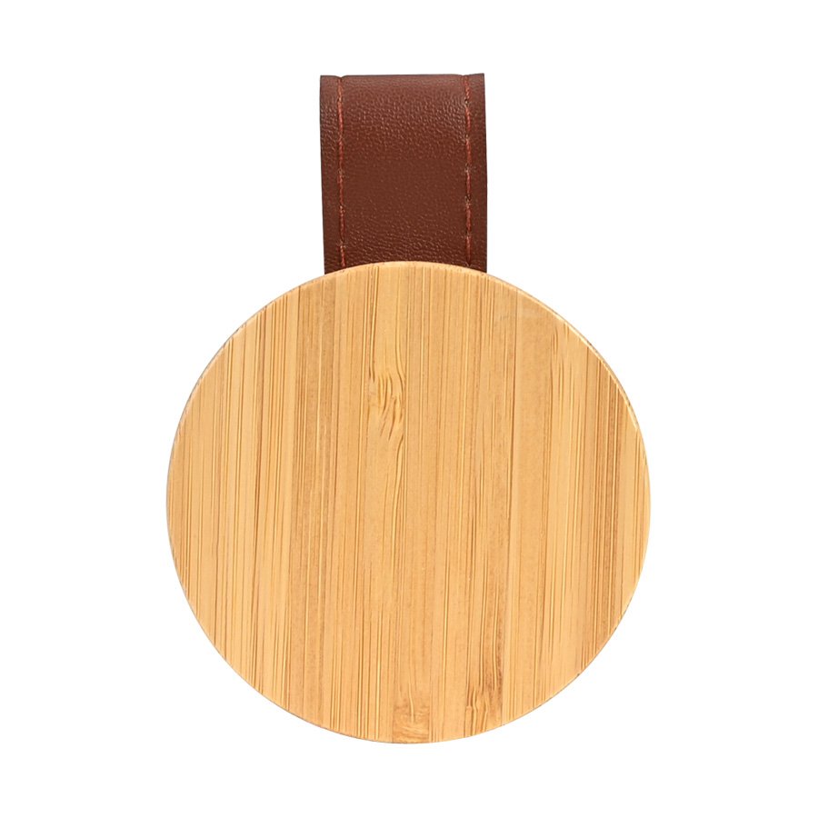 Espejo redondo de Bamboo y Eco-Cuero (SKU B99) para regalos corporativos y campañas de empresa. Compatible con estrategias de regalos corporativos, incluyendo soluciones en textil, sublimación y DTF. Espejo redondo con cuerpo de madera de Bamboo y correa de Eco-Cuero café. Cotiza formato corporativo con personalización de logo y cobertura en Chile.
