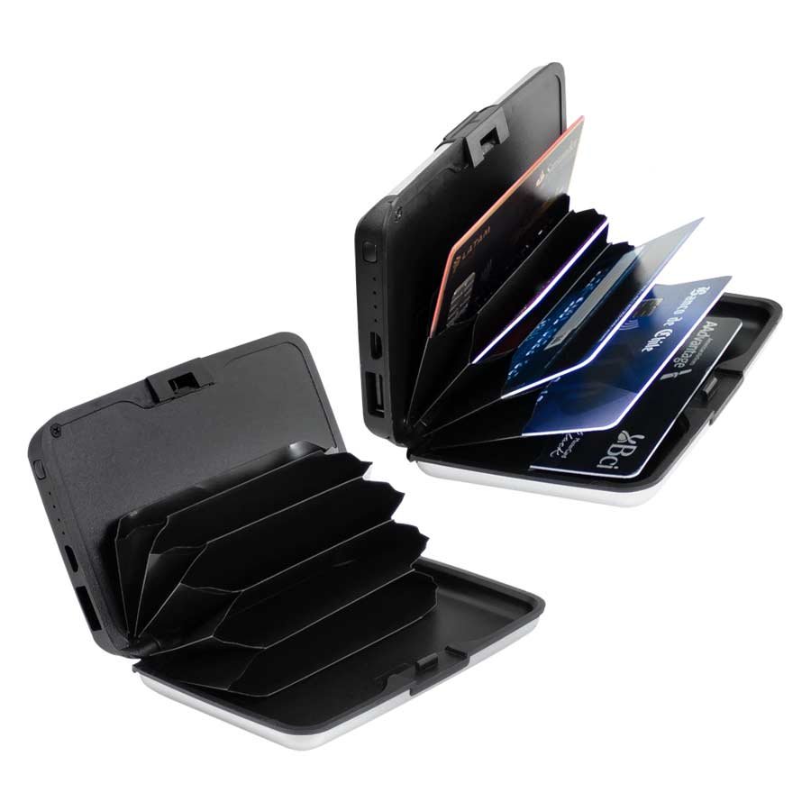 Porta-Tarjetas Anti-Clonación Power Bank (SKU F11) para regalos corporativos y campañas de empresa. Compatible con estrategias de regalos corporativos, incluyendo soluciones en textil, sublimación y DTF. Estuche rígido Porta-Tarjetas (tamaño Tarjeta de Crédito) con protección anti-clonación o Escaneo RFID. Capacidad interior para 6 Tarjetas. Incluye cargador de celular Power Bank de 2.500 mAh, con indicador de carga y cable USB/Micro USB. Presentación en bolsa de polipropileno y Estuche plateado de Regalo. ADVERTENCIA IMPORTANTE: Nuestra empresa no se hace responsable por clonación o fraude de tarjetas de crédito o débito. Es responsabilidad del usuario el debido cuidado de sus documentos de pago. Como complemento considere comprar e… Cotiza formato corporativo con personalización de logo y cobertura en Chile.