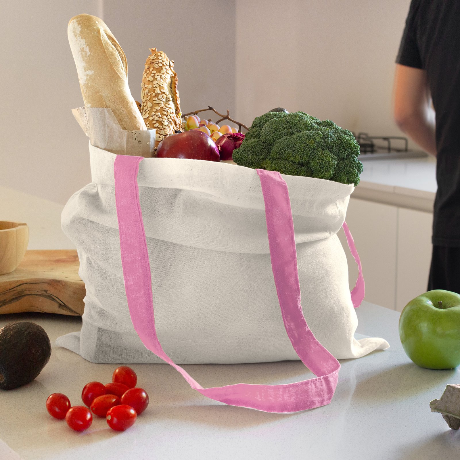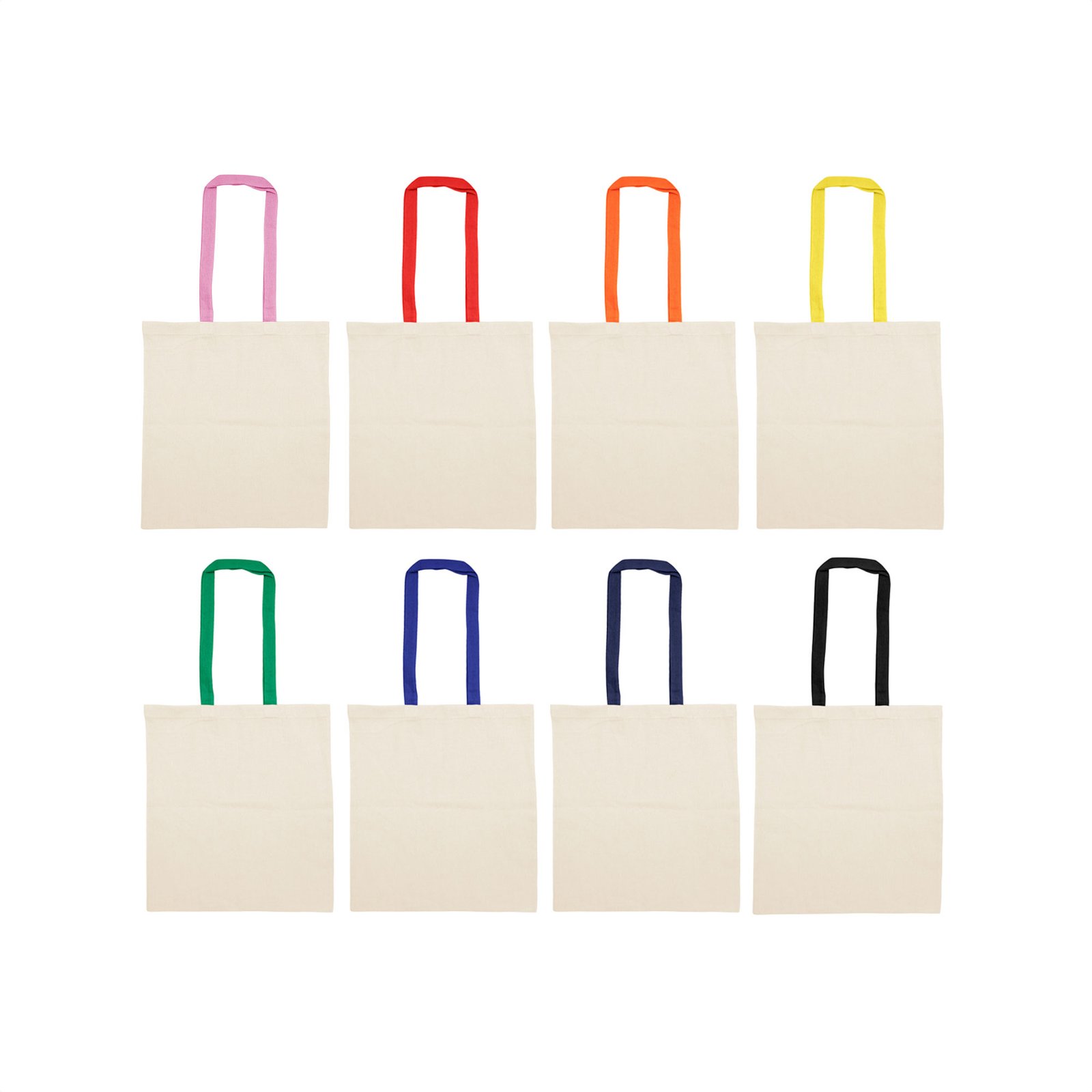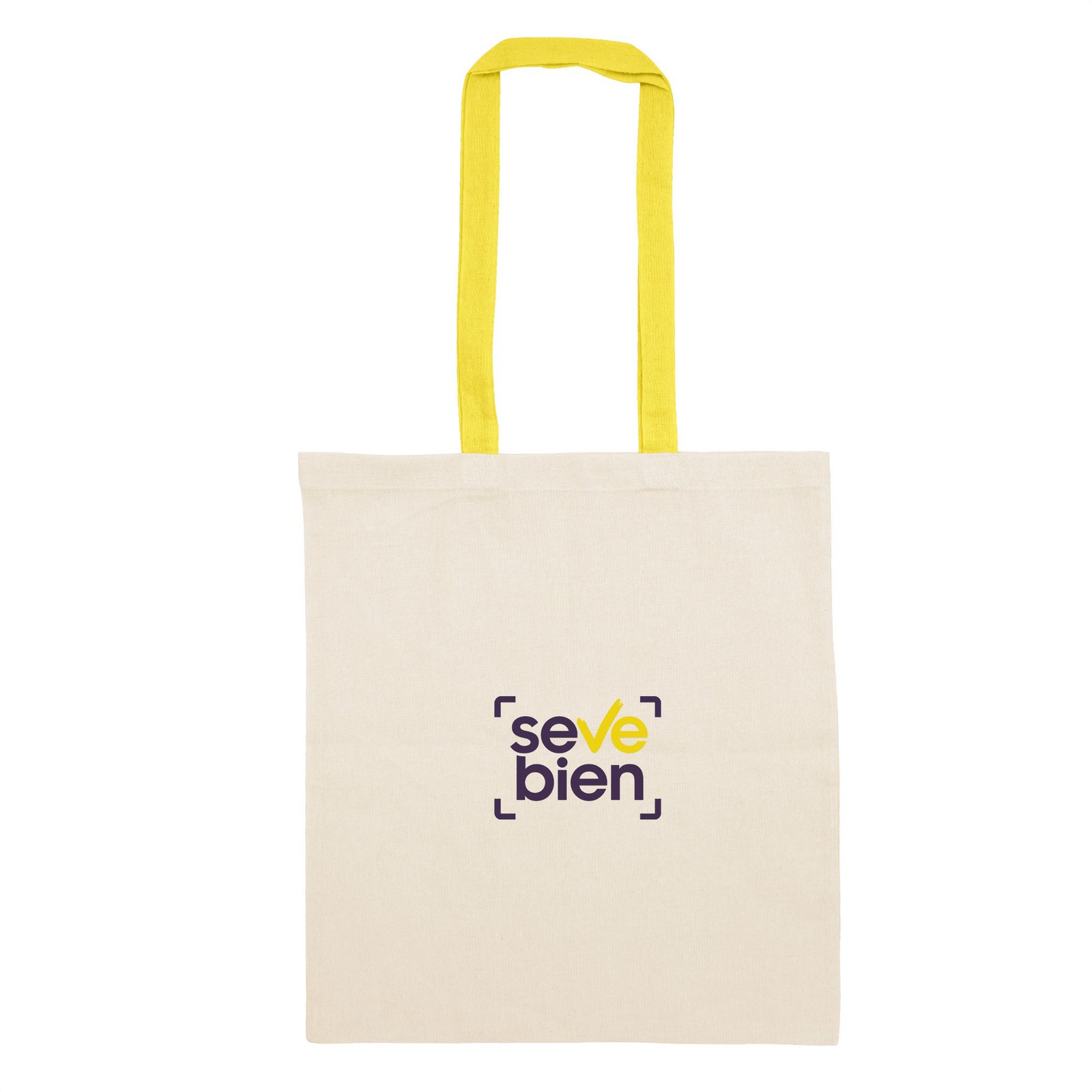 Bolsa de algodón "DONNA" (SKU C574) para regalos corporativos y campañas de empresa. Compatible con estrategias de regalos corporativos, incluyendo soluciones en textil, sublimación y DTF. Estilo en tus compras.Bolsa reutilizable color natural con manijas de diferentes colores. Manijas cosidas de 70cm x 2,5 cm.Medidas: 38 x 42 cm. Materiales: 100% Algodón. Peso: 50 g. aprox. (bolsa individual) y 105 g/m2 Cotiza formato corporativo con personalización de logo y cobertura en Chile.