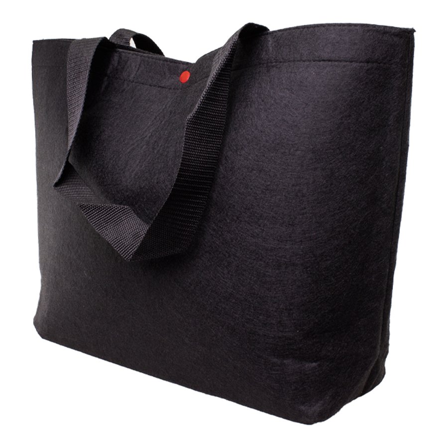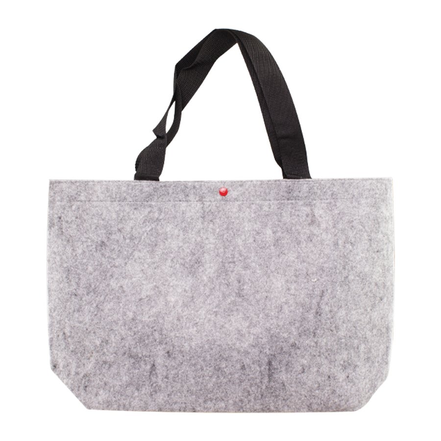 Bolsa de Fieltro (SKU D46) para regalos corporativos y campañas de empresa. Prioridad comercial en líneas de textil, sublimación y DTF para branding corporativo. Bolsa de compras de Fieltro modelo "British". Tela Fieltro Poliéster 300g/m2. Capacidad 20 litros, tamaño 51 x 33 x 12 cm. Incluye broche rojo y manillas de poliéster negro. • Tamaño: 51 x 33 x 12 cm. aprox. • Colores:Gris Jaspeado (07) • Sugerencia: Impresión digital (no 100% cubriente) • Capacidad: 20 litros • Material: Fieltro Poliéster 300g/m2 Cotiza formato corporativo con personalización de logo y cobertura en Chile.