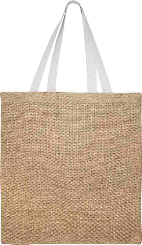 Bolsa de Yute Amazonia (SKU E82) para regalos corporativos y campañas de empresa. Compatible con estrategias de regalos corporativos, incluyendo soluciones en textil, sublimación y DTF. Bolsa de Yute modelo "Amazonia" con manillas de Algodón. • Tamaño: 38 x 42 cm. • Colores:Natural (11). • Sugerencia: Impresión digital. • Material: Yute natural. Cotiza formato corporativo con personalización de logo y cobertura en Chile.