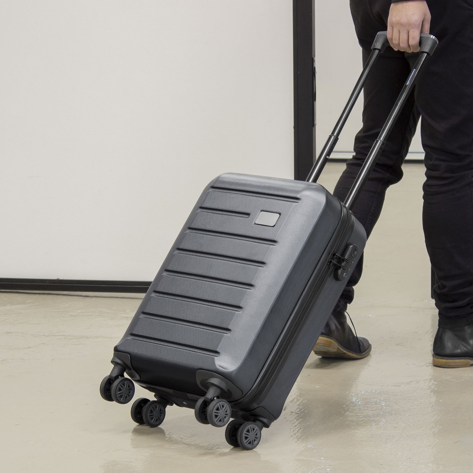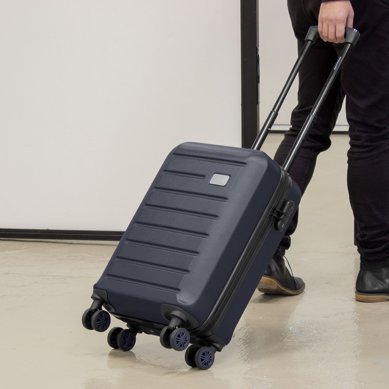 Carry on "MOU" (SKU K10) para regalos corporativos y campañas de empresa. Compatible con estrategias de regalos corporativos, incluyendo soluciones en textil, sublimación y DTF. 36 x 56 x 20 cm (total). Capacidad 34 litros. Peso aproximado 2,7 kg. 100% ABS. Interior 210D. Valija / Maleta pequeña. 8 ruedas con giro 360°. Manija de transporte reforzada y engomada. Mango extensible hasta 48 cm. 2 posiciones. Interior: 2 compartimentos principales con cierre y elásticos ajustables. Placa metálica desmontable para grabado (medida: 5,3 x 3 cm.) Candado incluido con combinación donde se enganchan los cierres. Cotiza formato corporativo con personalización de logo y cobertura en Chile.