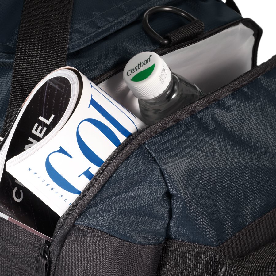 Deluxe Bolso XD (SKU D16) para regalos corporativos y campañas de empresa. Prioridad comercial en líneas de textil, sublimación y DTF para branding corporativo. Bolso viaje-deportivo tela impermeable polyester 840D, interior reforzado EVA, 2 bolsillos laterales, 1 bolsillo frontal, compartimento para zapatos, cinta de colgar con hombrera acolchada y cordón elástico multiuso. • Tamaño: 54 x 26 x 26 cm. • Capacidad: 36.5 litros. • Colores: Gris Acero/Negro (40). • Sugerencia de Impresión: Serigrafía, Bordado. Cotiza formato corporativo con personalización de logo y cobertura en Chile.