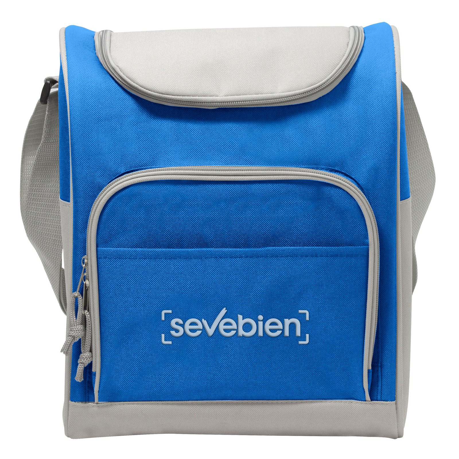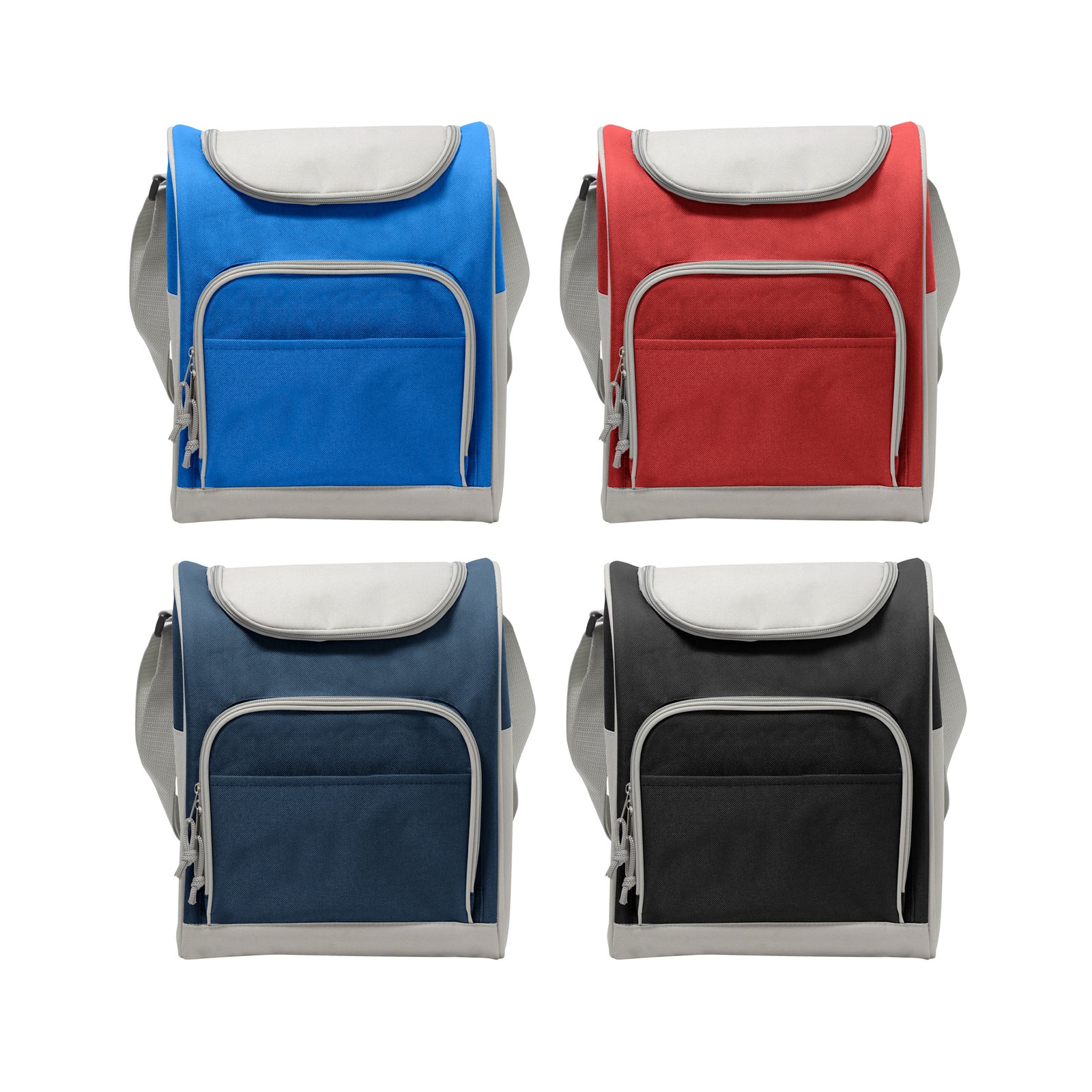 Bolso térmico "SCAPE" (SKU T637) para regalos corporativos y campañas de empresa. Compatible con estrategias de regalos corporativos, incluyendo soluciones en textil, sublimación y DTF. 34 x 25 x 19 cm. Capacidad 16l. Polyester 600D. Bolso térmico. Interior totalmente recubierto de aluminio. Bolsillo frontal, correa extensible y cierres metálicos con tira cierres de cordón. Cotiza formato corporativo con personalización de logo y cobertura en Chile.