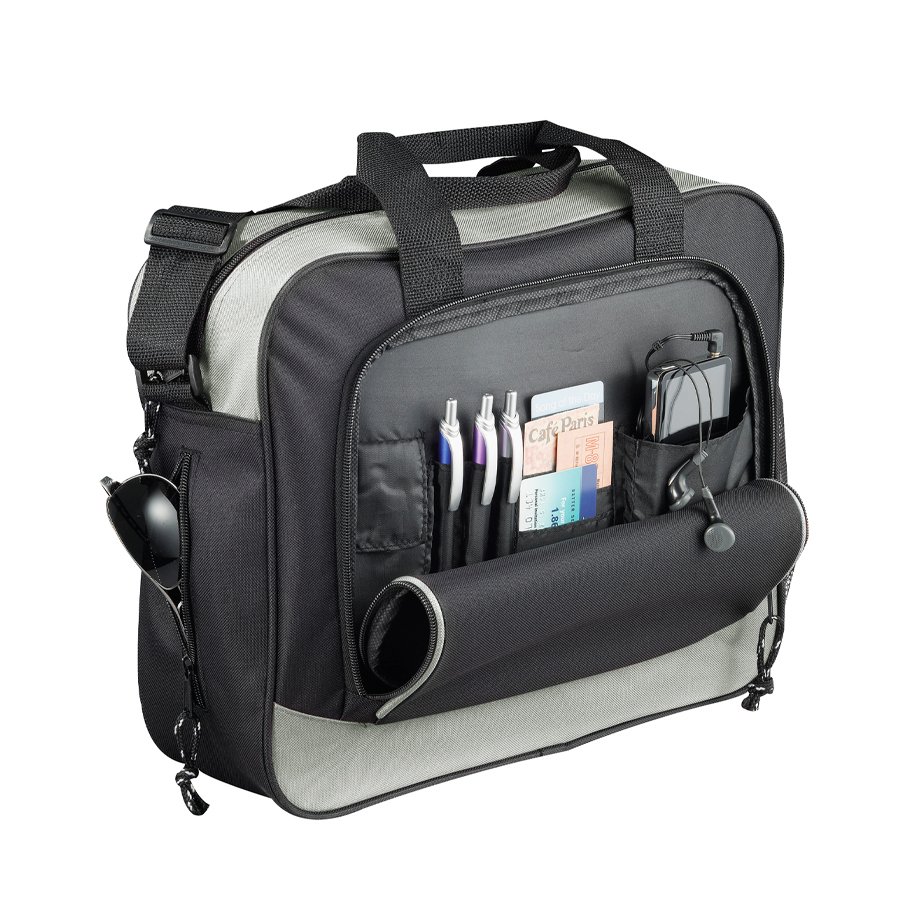 Maletín de Congreso (SKU D22) para regalos corporativos y campañas de empresa. Compatible con estrategias de regalos corporativos, incluyendo soluciones en textil, sublimación y DTF. Maletín de Congreso modelo "Bullet". • Tamaño: 38.5 x 30.5 x 11.5 cm / Bolsillo 26 x 19 cm. • Colores:Negro/Azul (02), Negro/Gris (07). • Sugerencia: Cotiza formato corporativo con personalización de logo y cobertura en Chile.