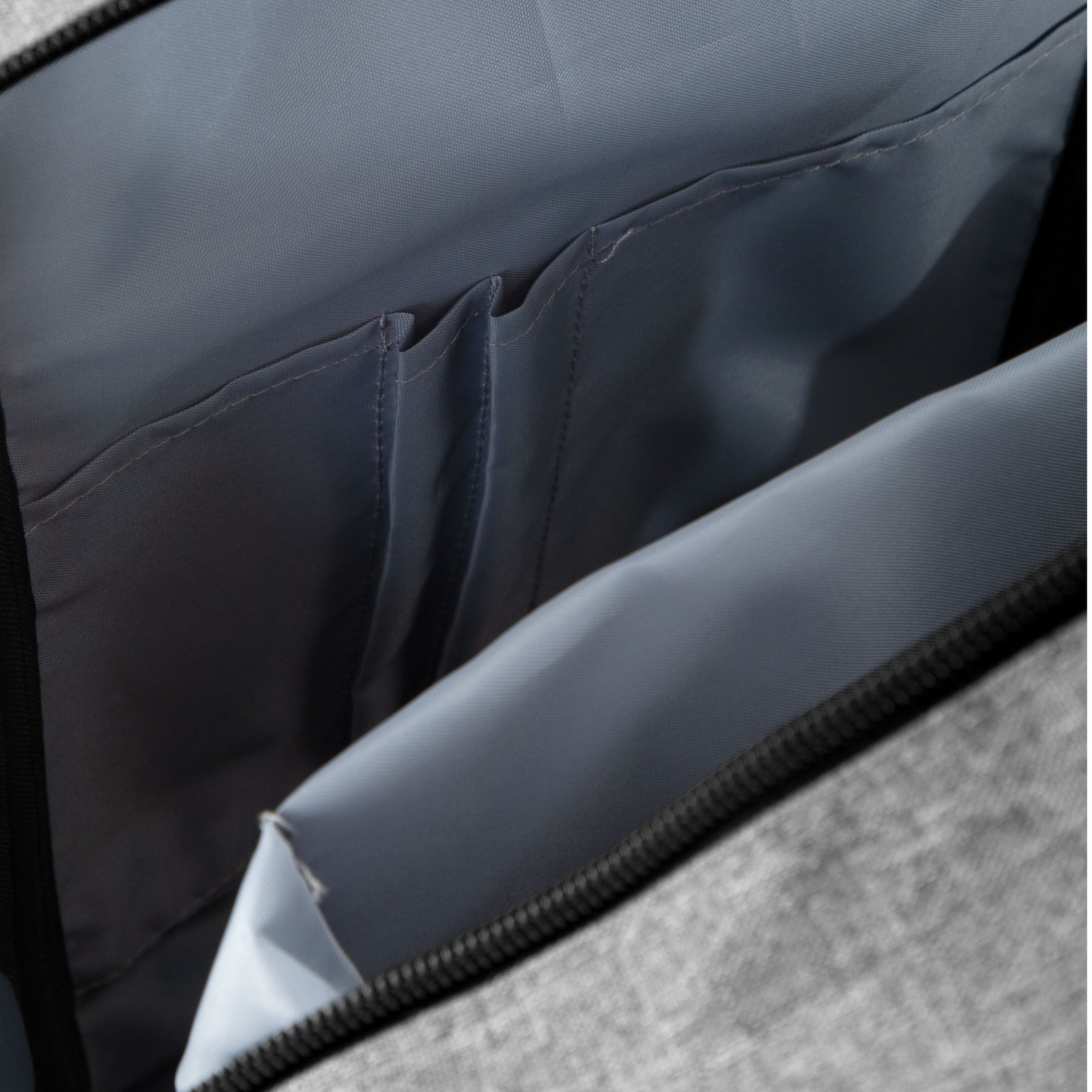 Mochila "BERLIN" (SKU C575) para regalos corporativos y campañas de empresa. Prioridad comercial en líneas de textil, sublimación y DTF para branding corporativo. Combina estilo y funcionalidad.Mochila urbana portanotebook de hasta 16 pulgadas. Compartimento principal con cierre y bolsillo portanotebook y tablet de hasta 11 pulgadas, además bolsillos organizadores de accesorios. Compartimento frontal con 2 bolsillos delanteros. 2 bolsillos laterales, mitad de tela y mitad de malla elástica. Asa color negro. Interior forrado el poliéster gris claro. Correas ajustables y espalda acolchadas. Tira para sujetar la mochila en la manija extensible de un equipaje de mano. Tiradores de cierre metálicos… Cotiza formato corporativo con personalización de logo y cobertura en Chile.