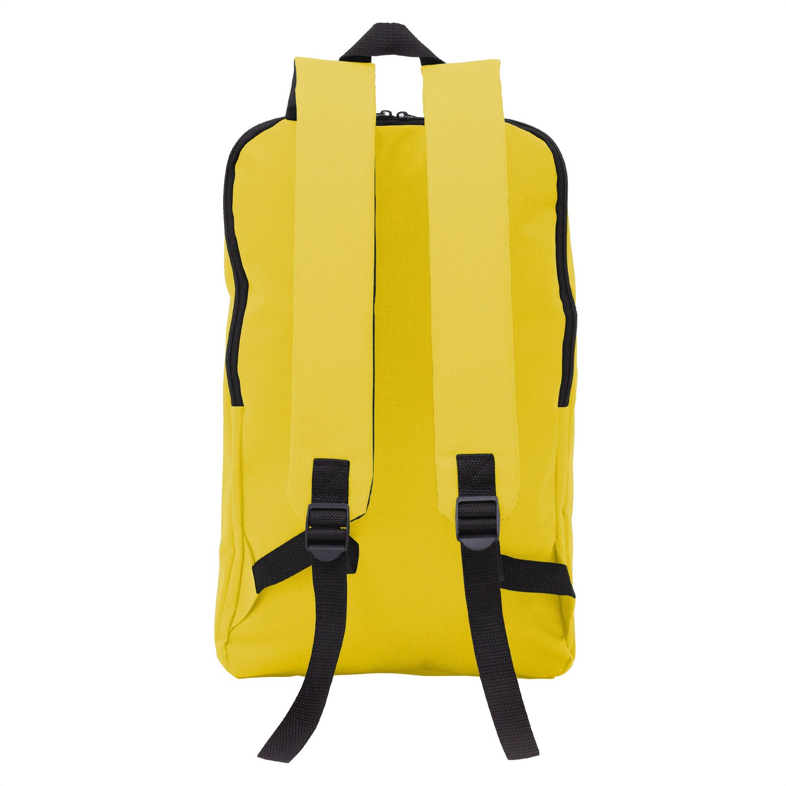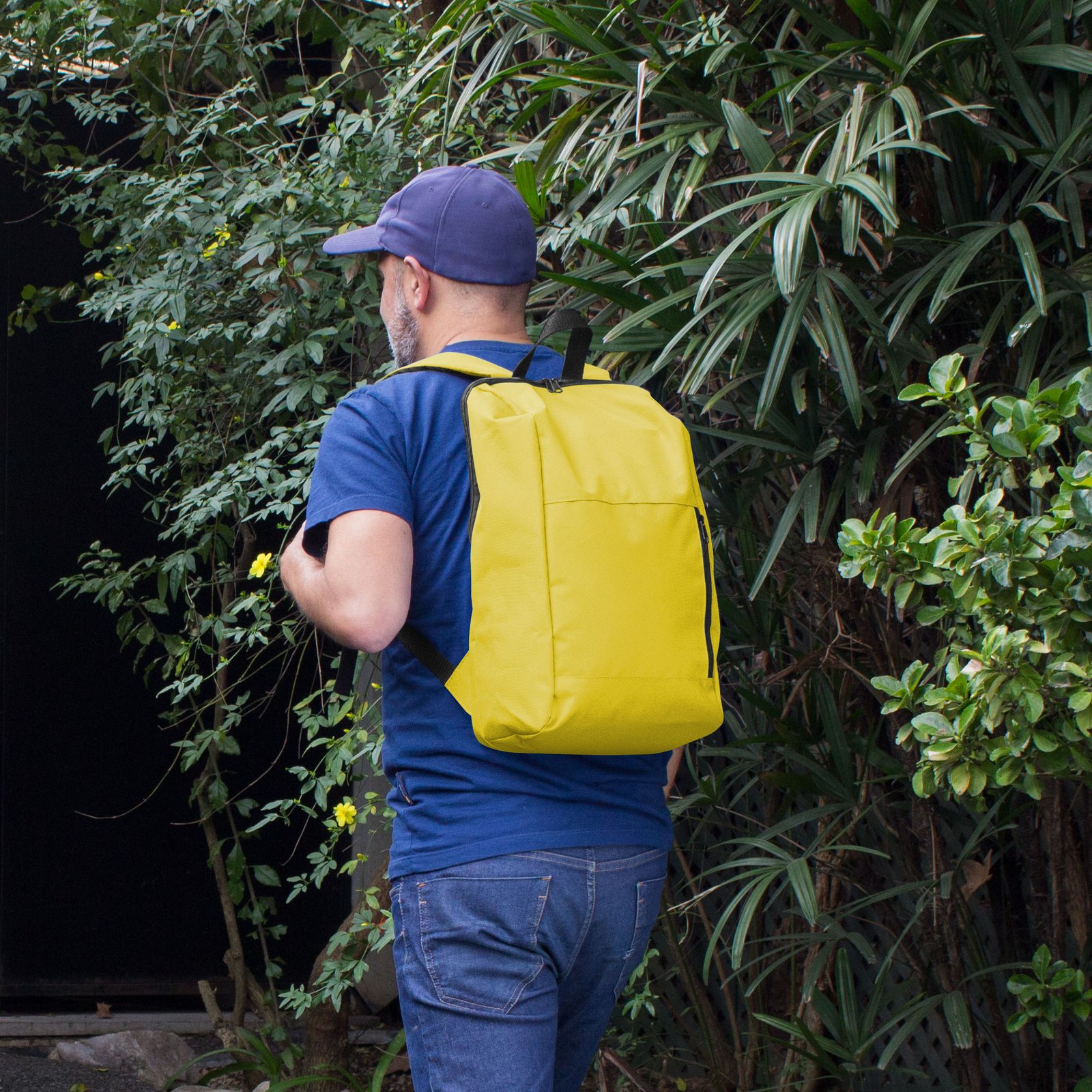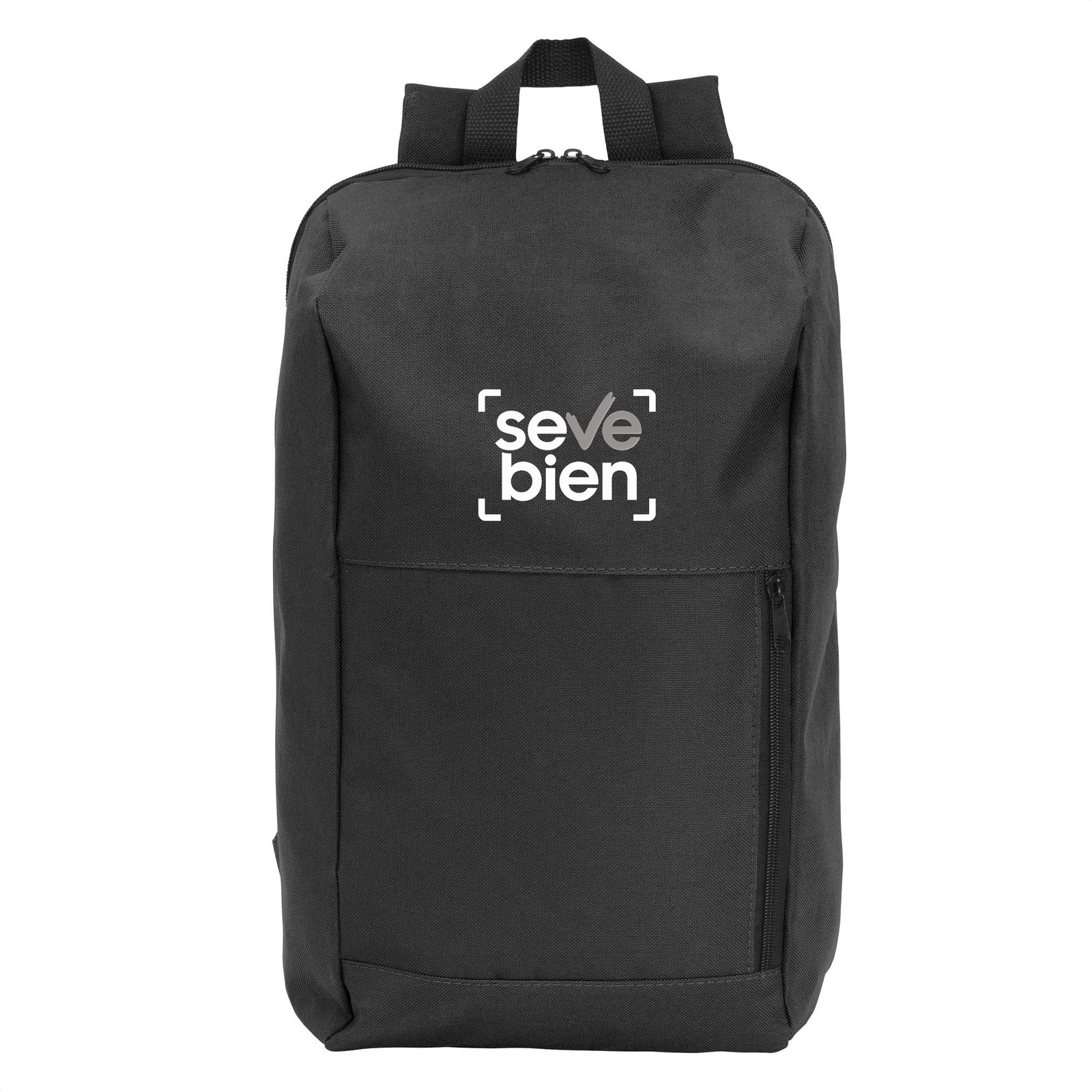 Mochila "GAMA" (SKU C571) para regalos corporativos y campañas de empresa. Compatible con estrategias de regalos corporativos, incluyendo soluciones en textil, sublimación y DTF. Estilo y funcionalidad.Mochila urbana. Bitono (cuerpo principal de un color, correas combinadas, asa y cierres en color negro). Compartimento principal con cierre. Bolsillo frontal con cierre lateral vertical. Correas ajustables. Tiradores de cierres metálicos.Medidas: 43 x 27 x 12 cm. Capacidad: 12 litros. Materiales: Poliéster 600D. Cotiza formato corporativo con personalización de logo y cobertura en Chile.