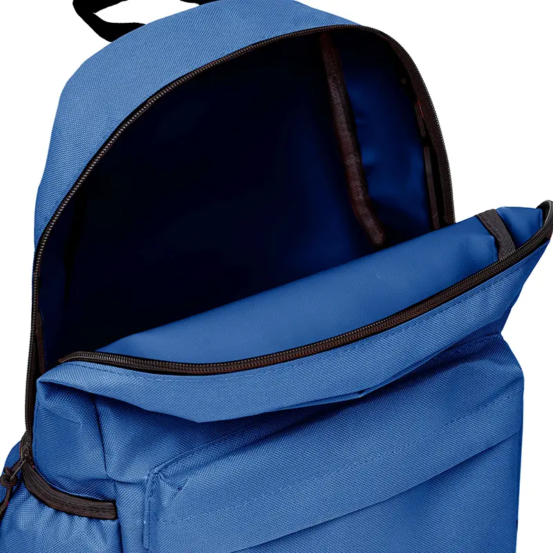 Mochila Lisa (SKU 313) para regalos corporativos y campañas de empresa. Compatible con estrategias de regalos corporativos, incluyendo soluciones en textil, sublimación y DTF. Mochila confeccionada en Polyester, con 2 bolsillos frontales con cierre y 2 bolsillos laterales elásticos porta botellas. Cuenta con correas regulables. Medidas: 42 cm alto | 27cm ancho | 12cm profundidad. Capacidad 13.5 lts. Cotiza formato corporativo con personalización de logo y cobertura en Chile.