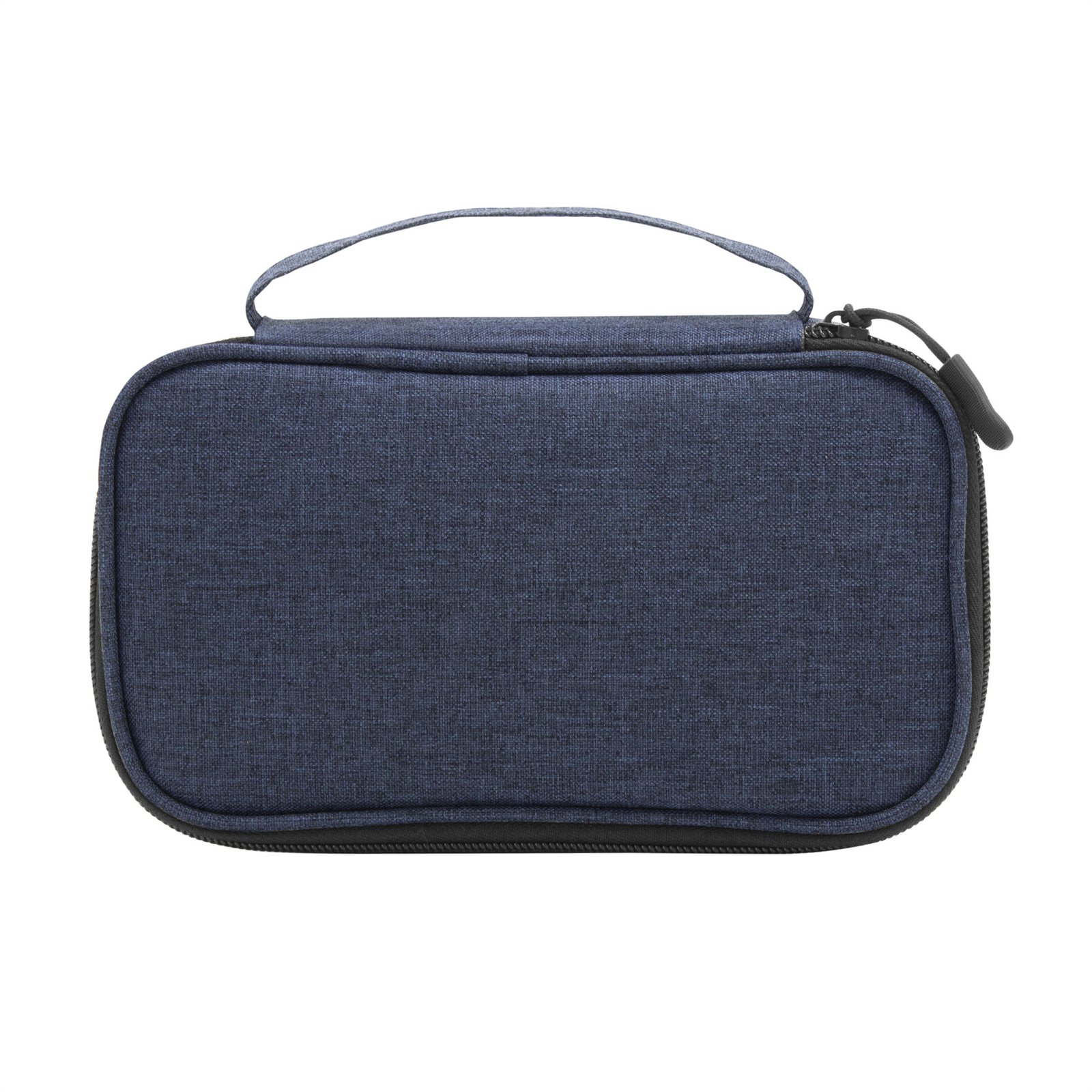 Necessaire "NIZA" (SKU T693) para regalos corporativos y campañas de empresa. Compatible con estrategias de regalos corporativos, incluyendo soluciones en textil, sublimación y DTF. 20 x 12 x 5,3 cm. Polyester 300D. Necessaire. Estructura acolchada. Asa para transportar. Compartimento principal con cierre con tirador engomado. Interior forrado. En uno de sus lados cuenta con un bolsillo de red. Cotiza formato corporativo con personalización de logo y cobertura en Chile.