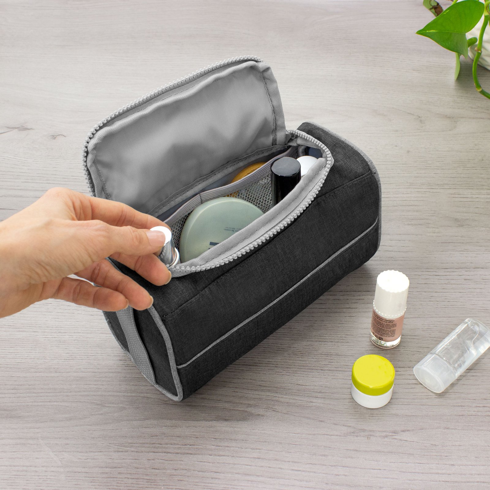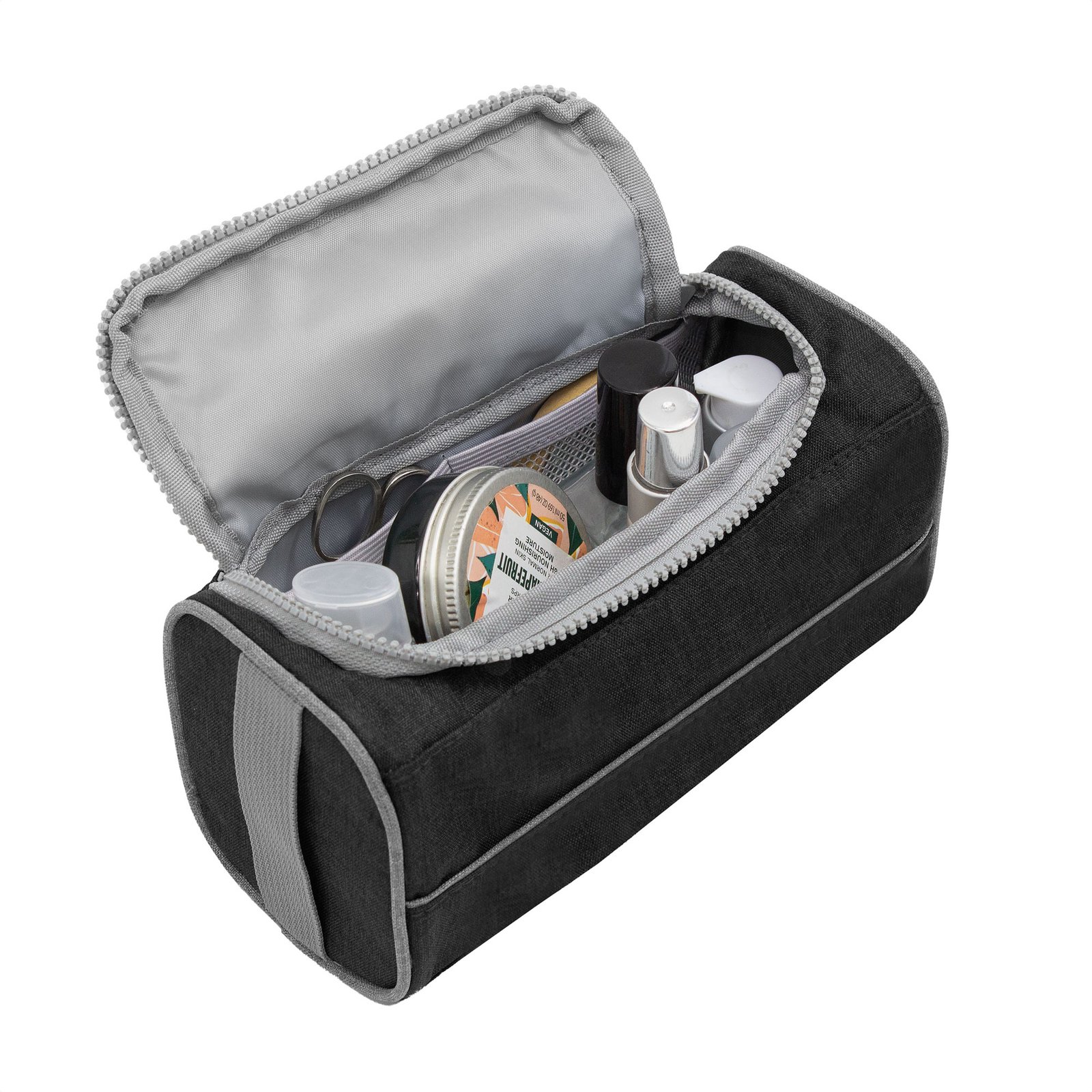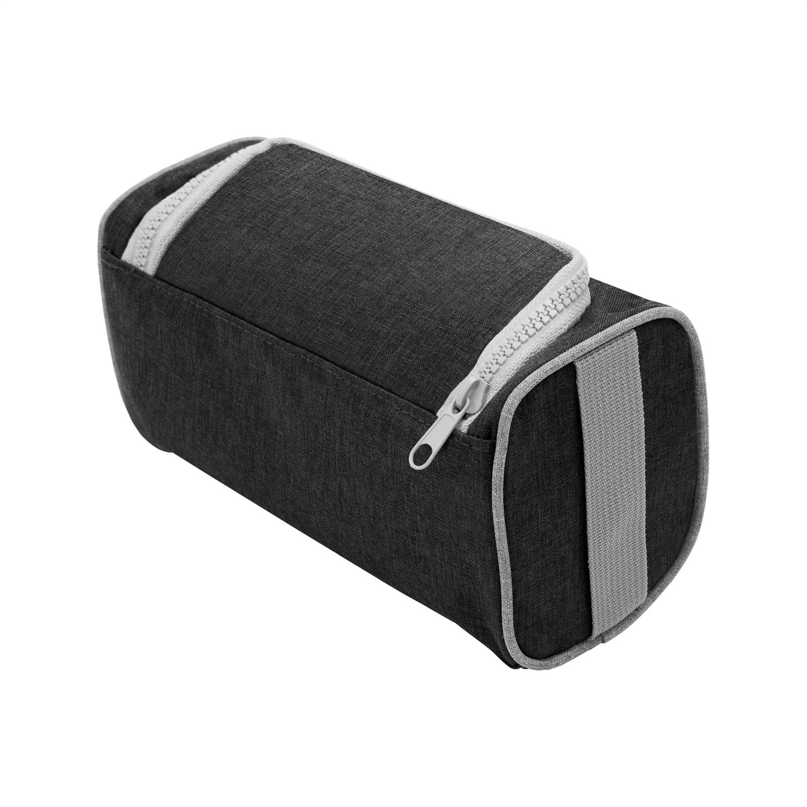 Necessaire "PRESTON" (SKU T710) para regalos corporativos y campañas de empresa. Prioridad comercial en líneas de textil, sublimación y DTF para branding corporativo. Diseño compacto, practicidad en tus manosNecessaire con tapa. Organizador con dos bolsillos internos de red elastizados, tapa acolchada con cierre plástico color gris y asa lateral de tela color gris para transportar.Medidas:22 x 10 x 12 cm. Material: Poliéster 300D bicolor. Cotiza formato corporativo con personalización de logo y cobertura en Chile.