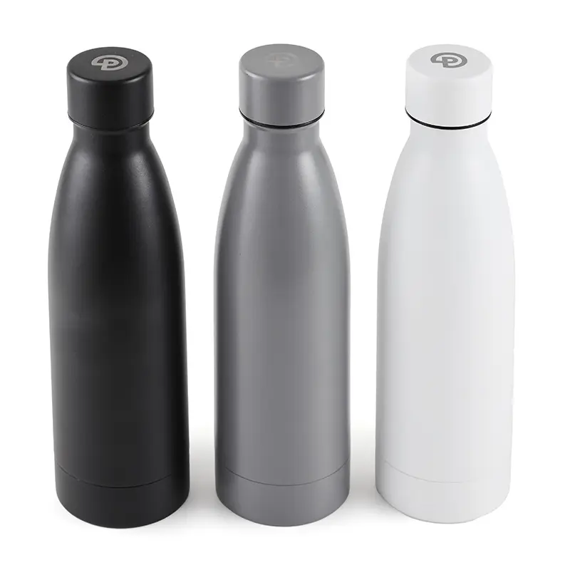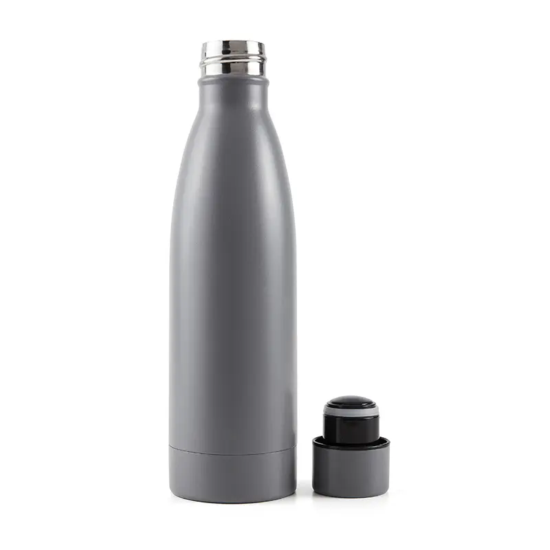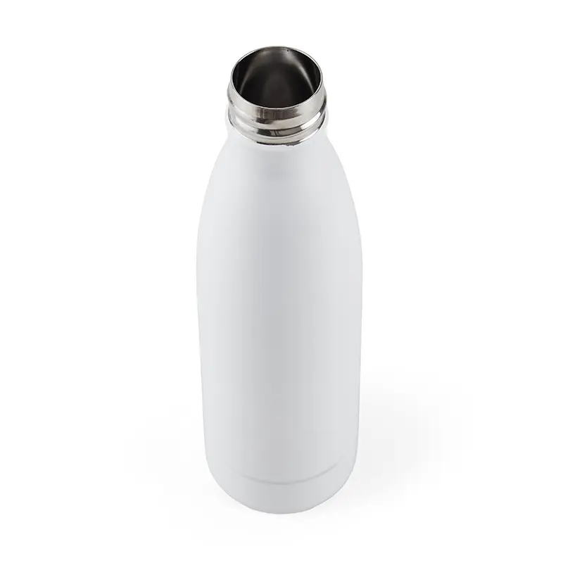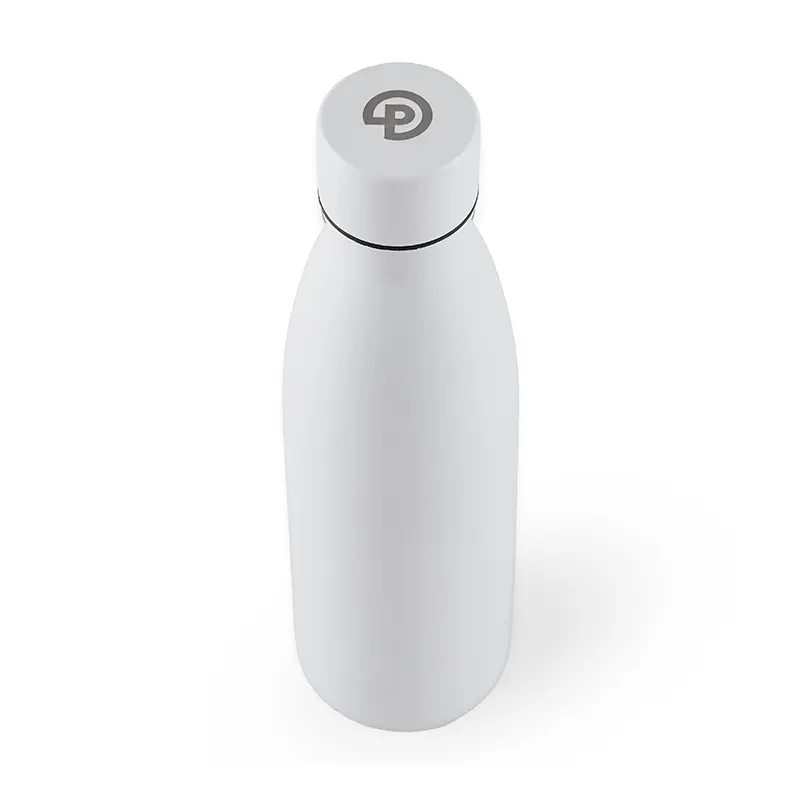 Botella Atuel Pampero (SKU 479) para regalos corporativos y campañas de empresa. Compatible con estrategias de regalos corporativos, incluyendo soluciones en textil, sublimación y DTF. Botella reutilizable de doble pared de acero inoxidable, esmaltado en su exterior con Powder Coating. Es ideal para mantener la temperatura de la bebida: mantiene 4 horas la bebida caliente y 8 horas la bebida fría. Su tapa está confeccionada en PP, acero inoxidable y silicona para evitar derrames de líquido. Producto libre de BPA. Reutilizable. Medidas: 25.5 cm x diámetro 6.8 cm. Capacidad: 500 ml. Incluye Gift Box confeccionada en cartulina Kraft. No es apto para lavavajillas. No es apto para microondas. Pampero Cotiza formato corporativo con personalización de logo y cobertura en Chile.