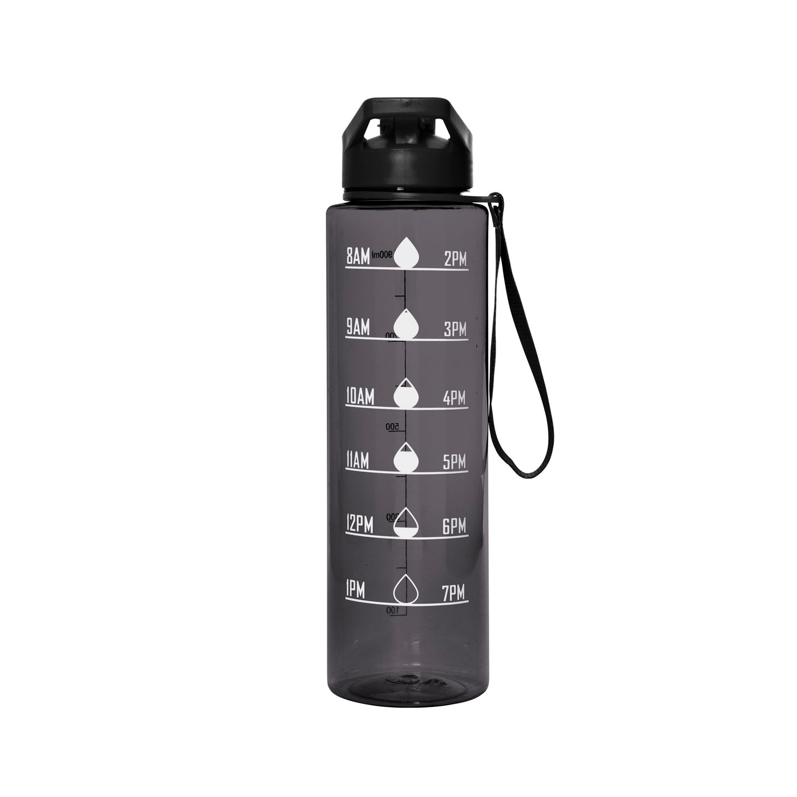 Botella deportiva motivacional "BORG" (SKU T777) para regalos corporativos y campañas de empresa. Compatible con estrategias de regalos corporativos, incluyendo soluciones en textil, sublimación y DTF. Tu meta en cada sorbo.Botella con marcador de tiempo y medida. Color translúcido con tapa plástica flip top con asa, boquilla y correa del mismo color de la botella.Medidas: Ø 7,5 x 27,5 cm. (con tapa) Capacidad: 1000 ml. Material: Plástico PETG, polipropileno y silicona. Cotiza formato corporativo con personalización de logo y cobertura en Chile.