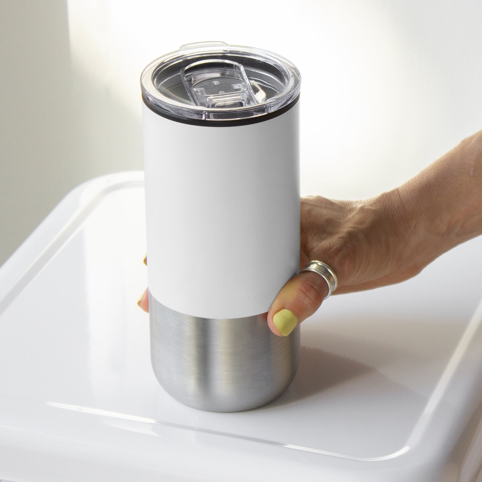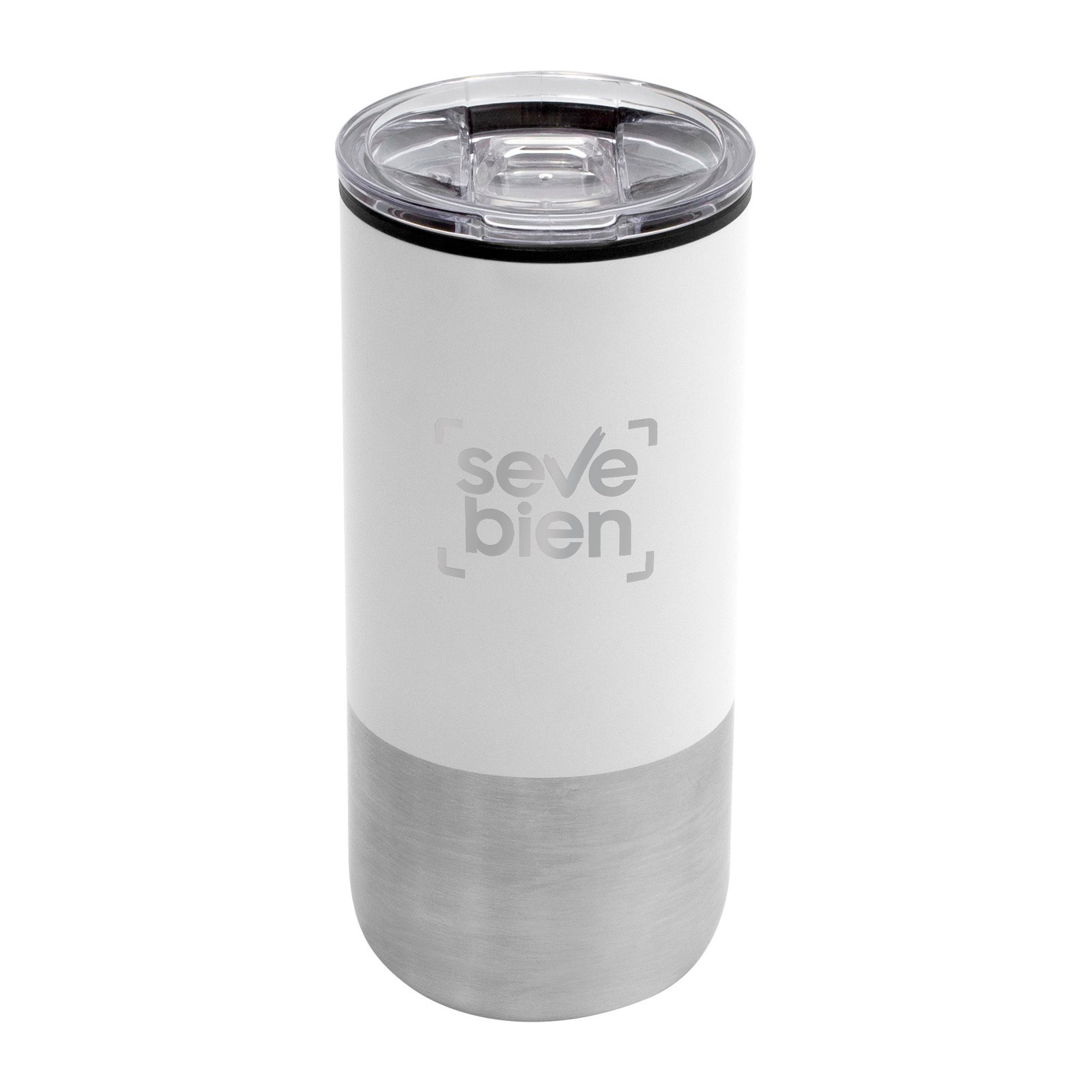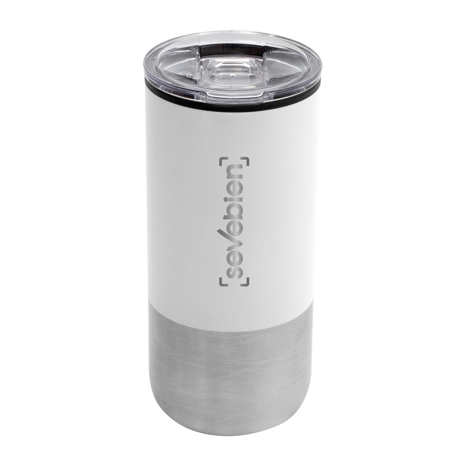 MUG "NORI" (SKU T625) para regalos corporativos y campañas de empresa. Compatible con estrategias de regalos corporativos, incluyendo soluciones en textil, sublimación y DTF. Ø 8 cm X 17.6 cm. Capacidad 500 ml. Polipropileno y acero inoxidable. Mug doble pared. Interior en plástico y exterior de acero inoxidable 201. Tapa plástica transparente a presión con anillo de silicona. Base antideslizante. Presentación en caja de regalo. Cotiza formato corporativo con personalización de logo y cobertura en Chile.