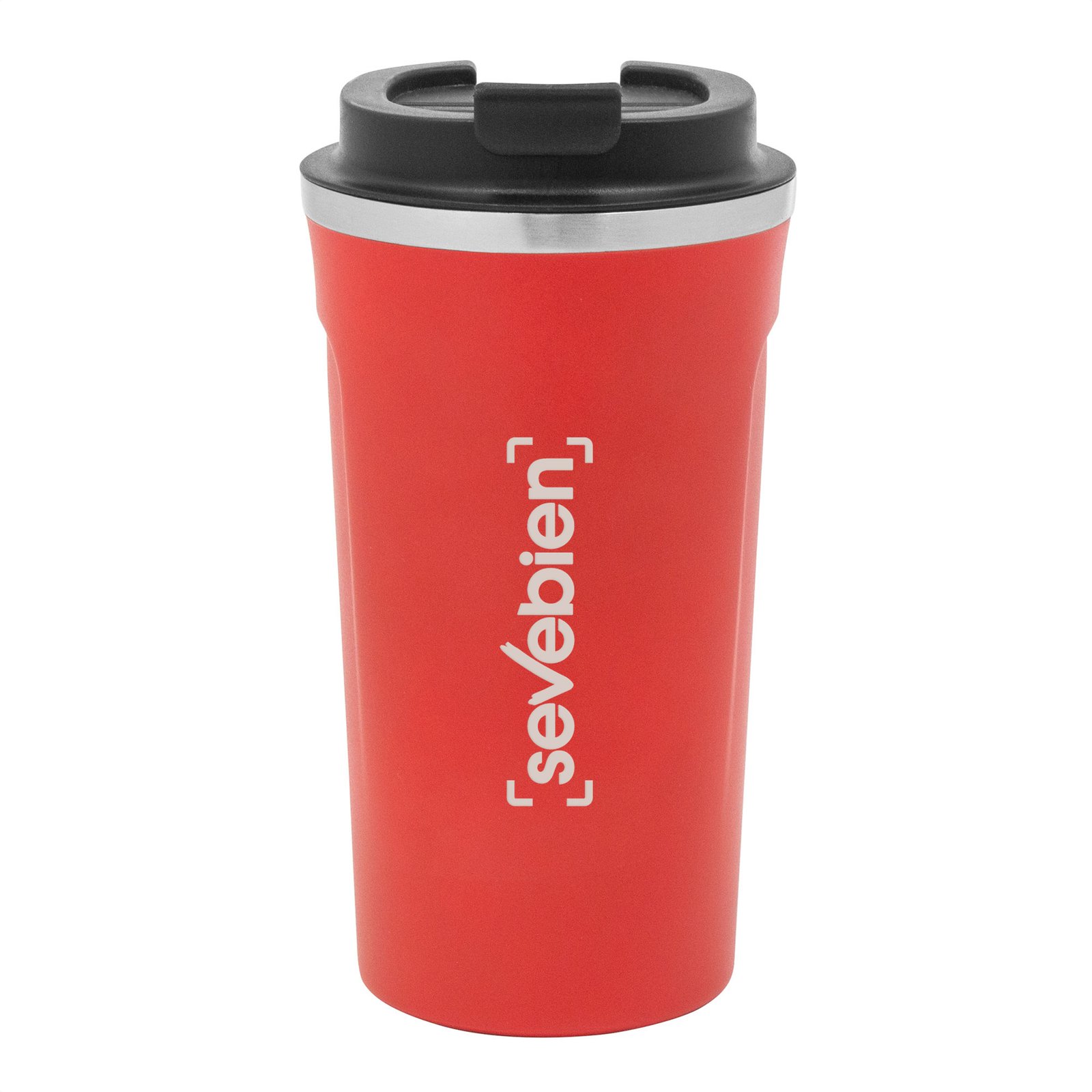 MUG TÉRMICO "ASTORIA" (SKU T614) para regalos corporativos y campañas de empresa. Compatible con estrategias de regalos corporativos, incluyendo soluciones en textil, sublimación y DTF. Ø 9 x 16,5 cm. Capacidad 500 ml. Acero Inoxidable. Mug doble pared, sellado al vacío. Interior acero 304 y exterior acero 201. Tapa plástica a rosca con seguro hermético antiderrame. Pintura Powder Coat (pintura mas duradera y resistente a la corrosión y el paso del tiempo).Mantiene hasta 8 hs la temperatura de las bebidas calientes y hasta 12 hs la de las bebidas frías. Presentación en caja de regalo. Cotiza formato corporativo con personalización de logo y cobertura en Chile.