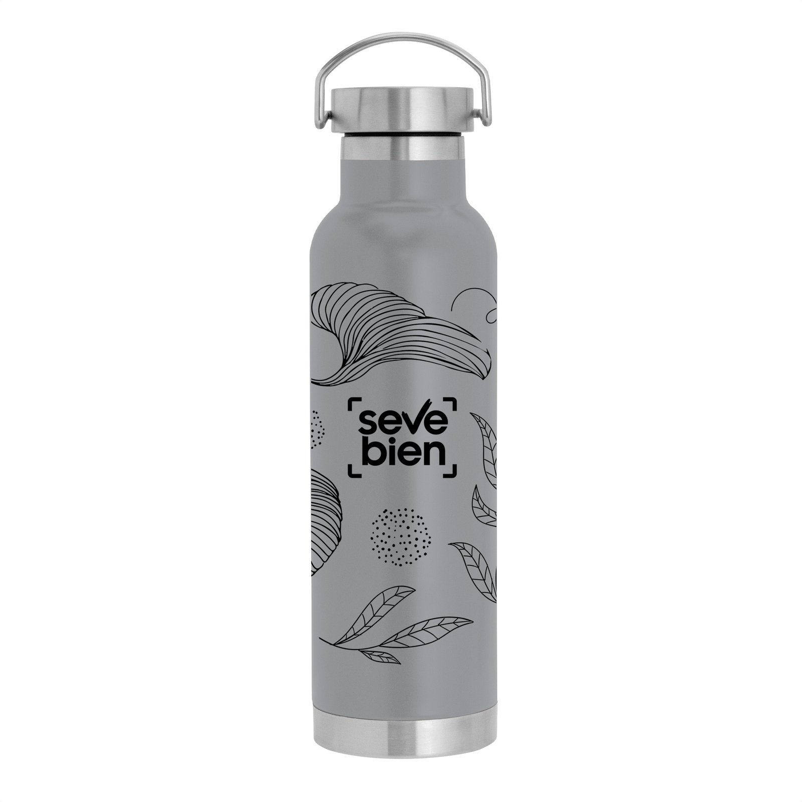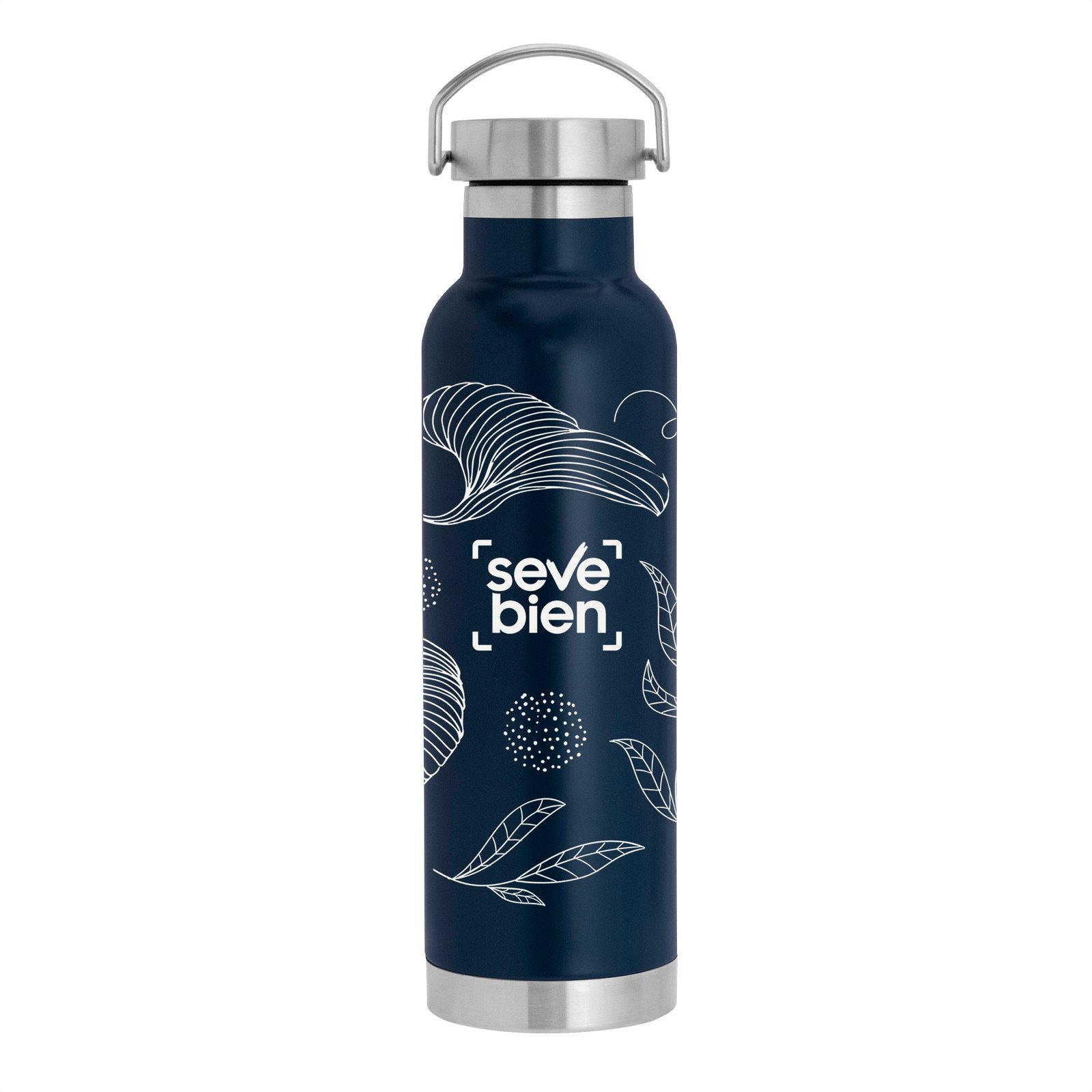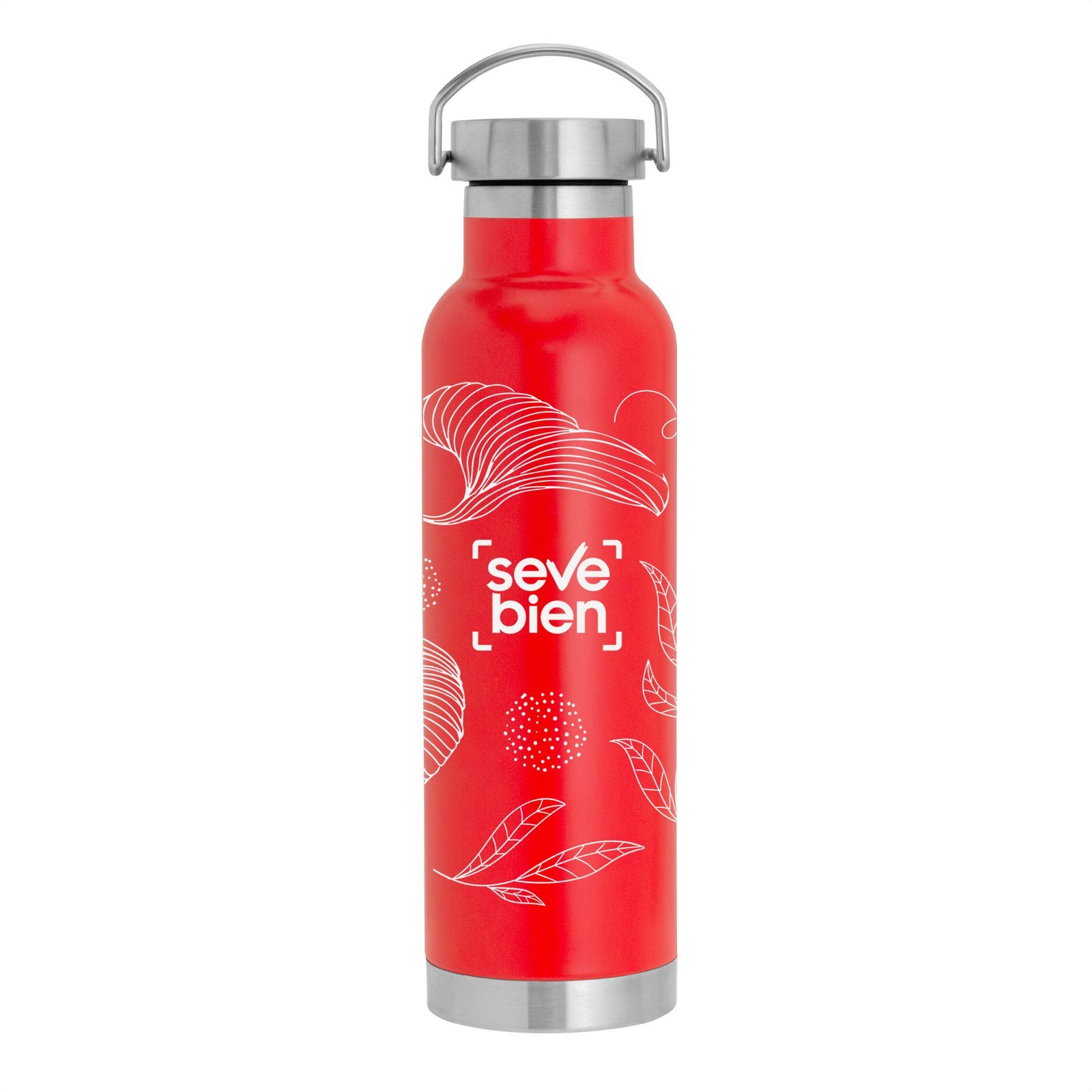 BOTELLA TÉRMICA "HYDRO II" (SKU K103) para regalos corporativos y campañas de empresa. Compatible con estrategias de regalos corporativos, incluyendo soluciones en textil, sublimación y DTF. Ø 7,3 x 26 cm. Capacidad 650 ml. Acero inoxidable. Botella doble pared, sellada al vacío. Interior en acero 304 y exterior en acero 201. Tapa de acero a rosca con manija rebatible metálica . La medida de este termo es tan practica que con el tendras el liquido necesario para estar hidratado en el momento del día que elijas. Mantiene hasta 12 hs la temperatura de las bebidas calientes y hasta 24 hs la de las bebidas frías. Presentación en caja de regalo. Cotiza formato corporativo con personalización de logo y cobertura en Chile.