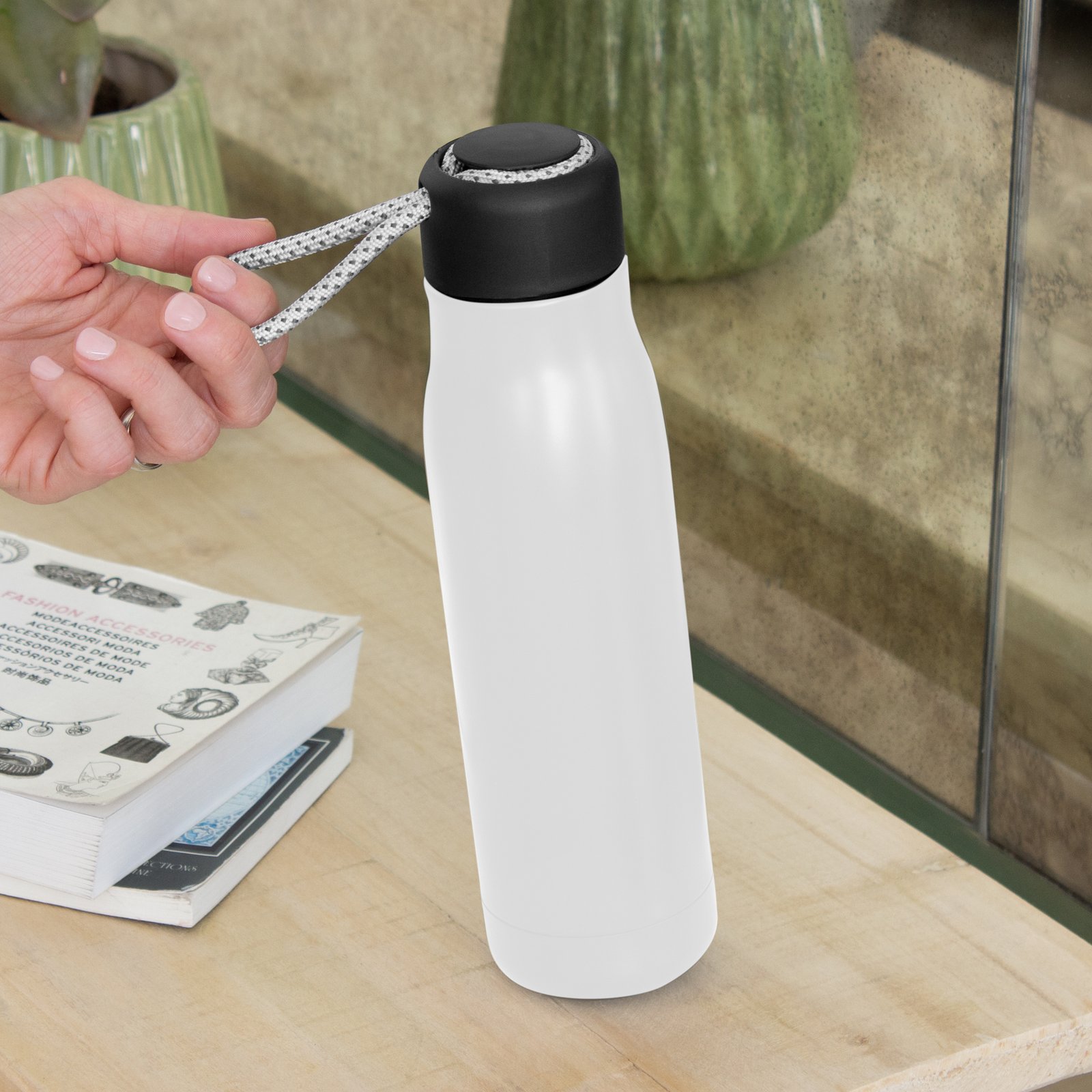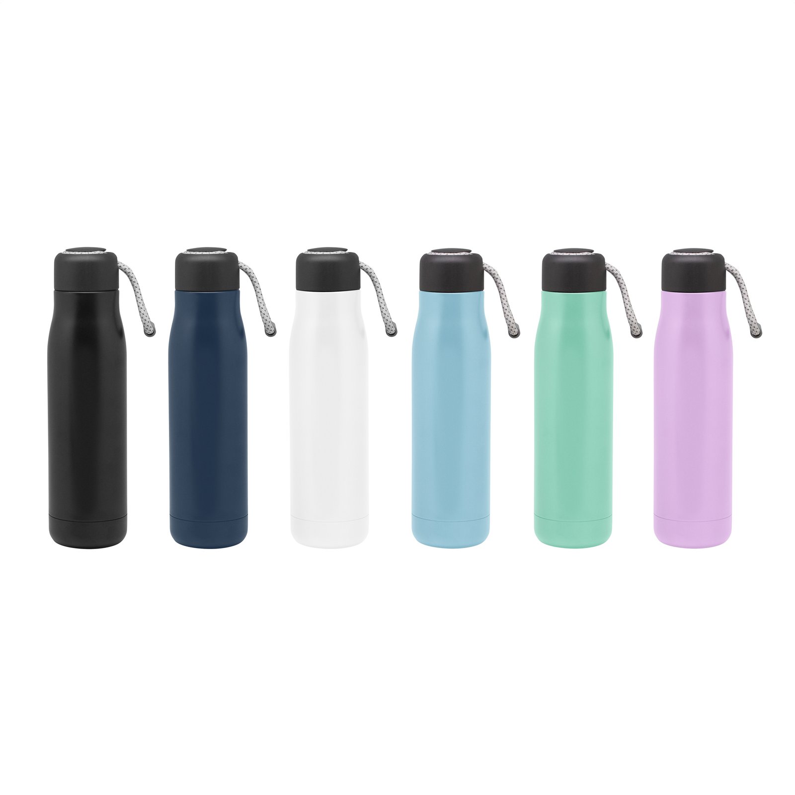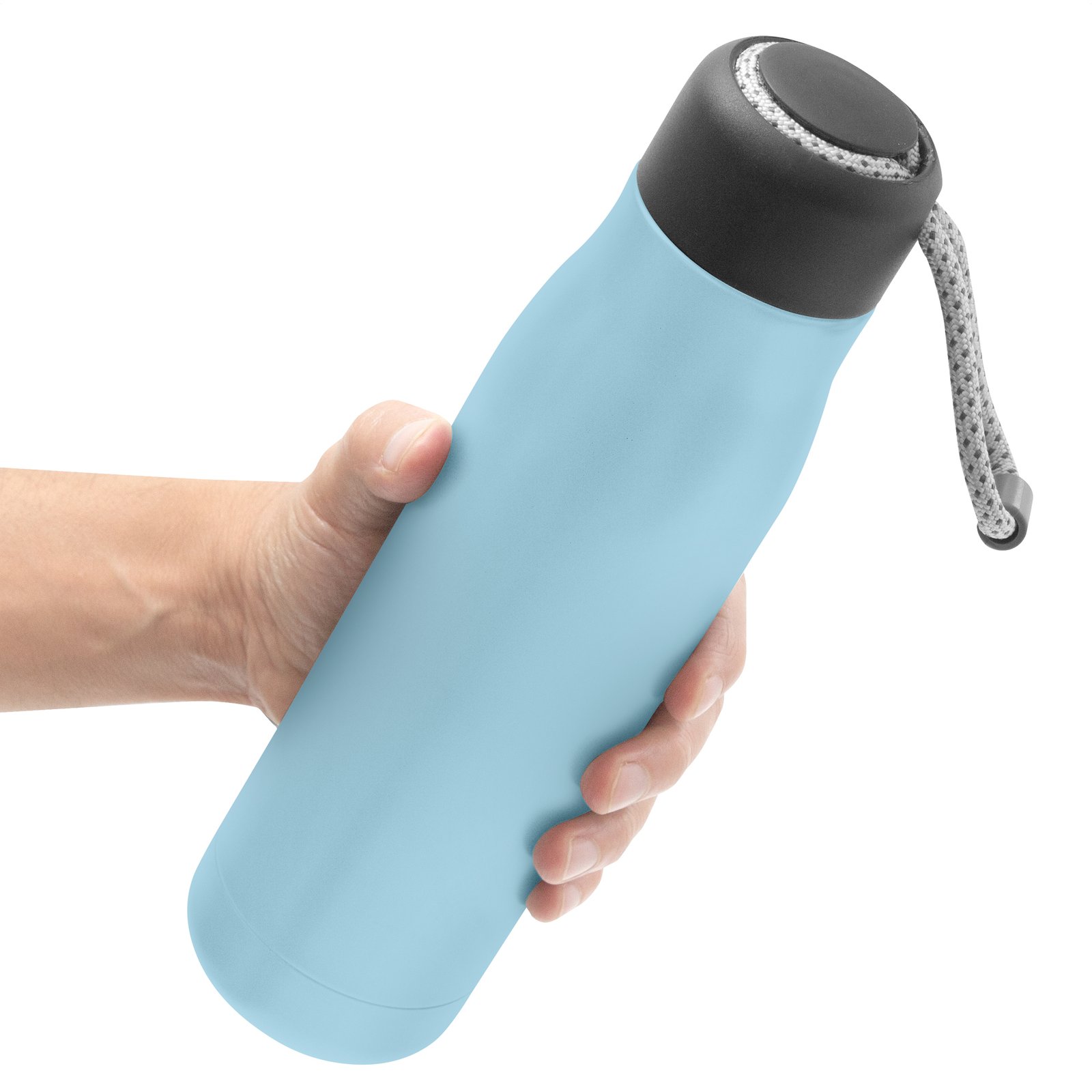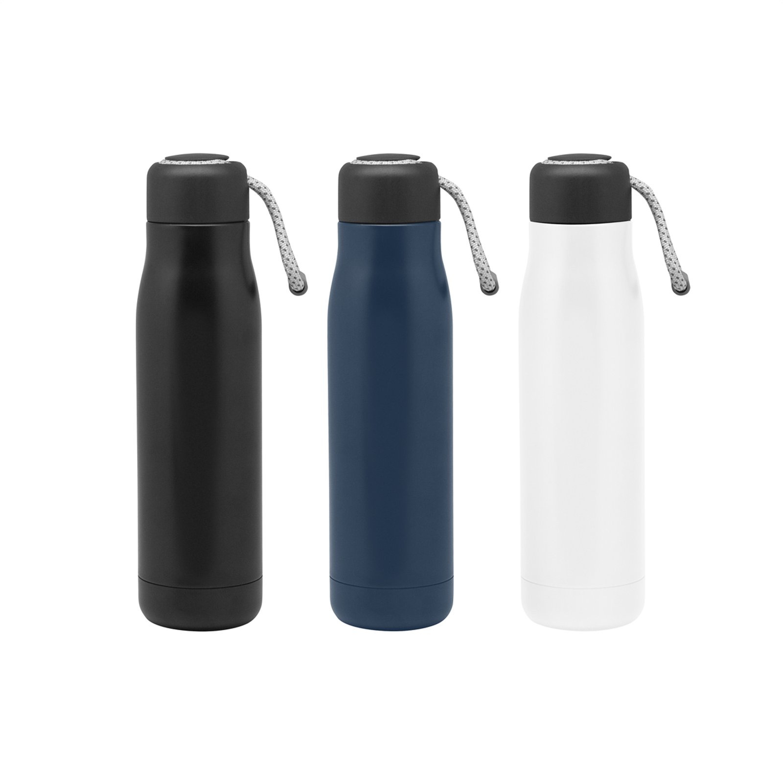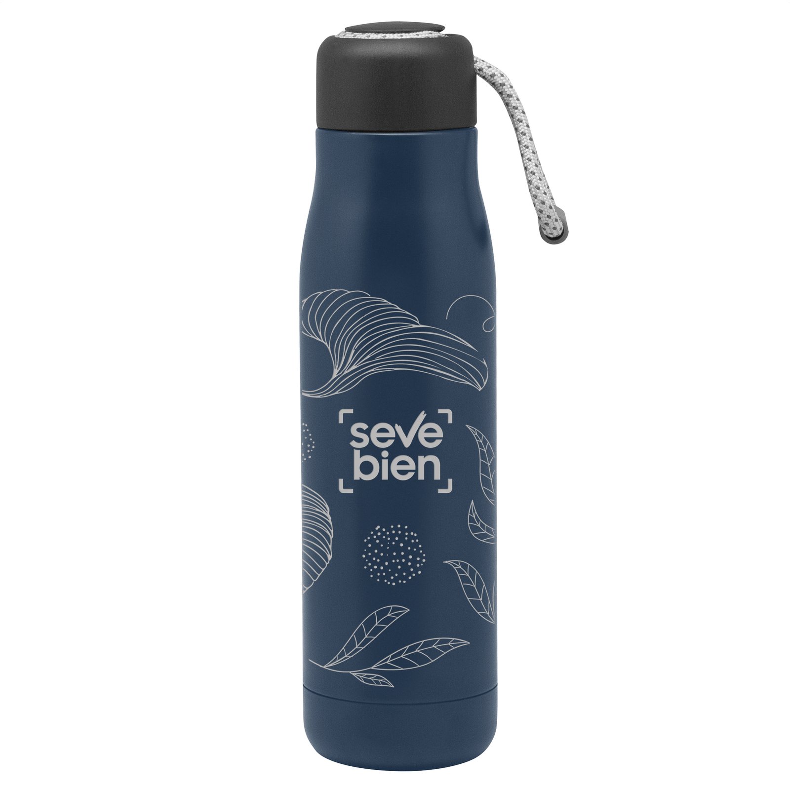 Botella térmica "MONTANA" (SKU T632) para regalos corporativos y campañas de empresa. Compatible con estrategias de regalos corporativos, incluyendo soluciones en textil, sublimación y DTF. Lleva tus bebidas favoritas con la temperatura que te gusta.Botella doble pared, sellada al vacío. Interior de acero 304 y exterior de acero 201. Tapa plástica de polipropileno y anillo de silicona. Posee además tira de color gris de 12 cm de largo. Ideal para llevarla a todos lados. Mantiene hasta 6 hs la temperatura de las bebidas calientes y hasta 10 hs la de las bebidas frías.Medidas: Ø 7cm x 25.5 cm. Capacidad: 500 ml. Materiales: Acero inoxidable y polipropileno. Presentación: en caja de regalo Kraft. Cotiza formato corporativo con personalización de logo y cobertura en Chile.