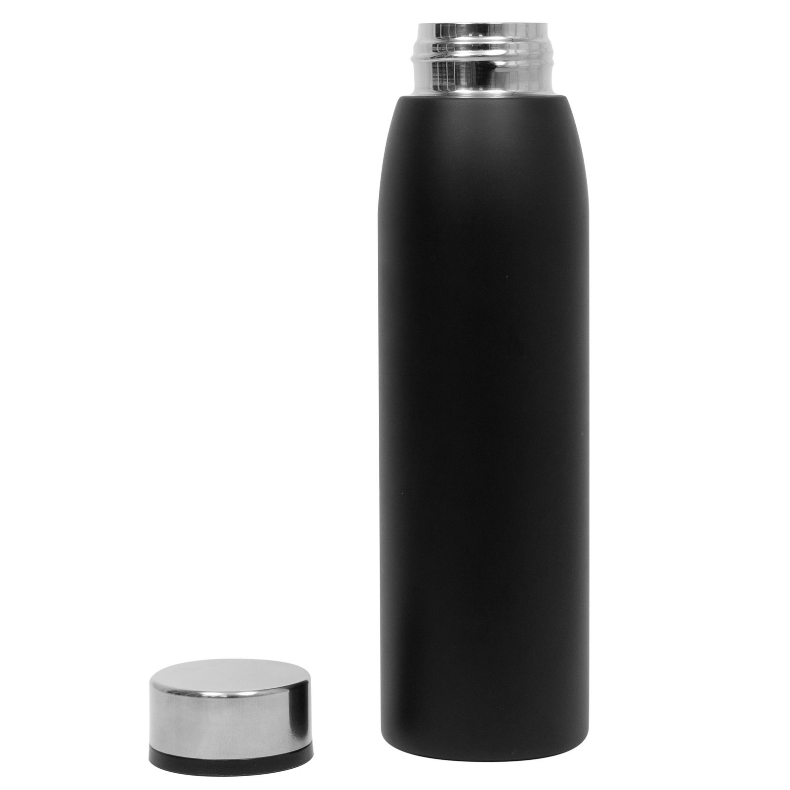 BOTELLA TÉRMICA "OTAWA II" (SKU T611) para regalos corporativos y campañas de empresa. Compatible con estrategias de regalos corporativos, incluyendo soluciones en textil, sublimación y DTF. Ø 7 x 26 cm. Capacidad 750 ml. Botella doble pared, sellada al vacío. Interior de acero 304 y exterior de acero 201. Cuerpo color negro y tapa a rosca de acero. Mantiene hasta 12 hs la temperatura de las bebidas calientes y hasta 24 hs la de las bebidas frías. Presentación en caja de regalo. Cotiza formato corporativo con personalización de logo y cobertura en Chile.