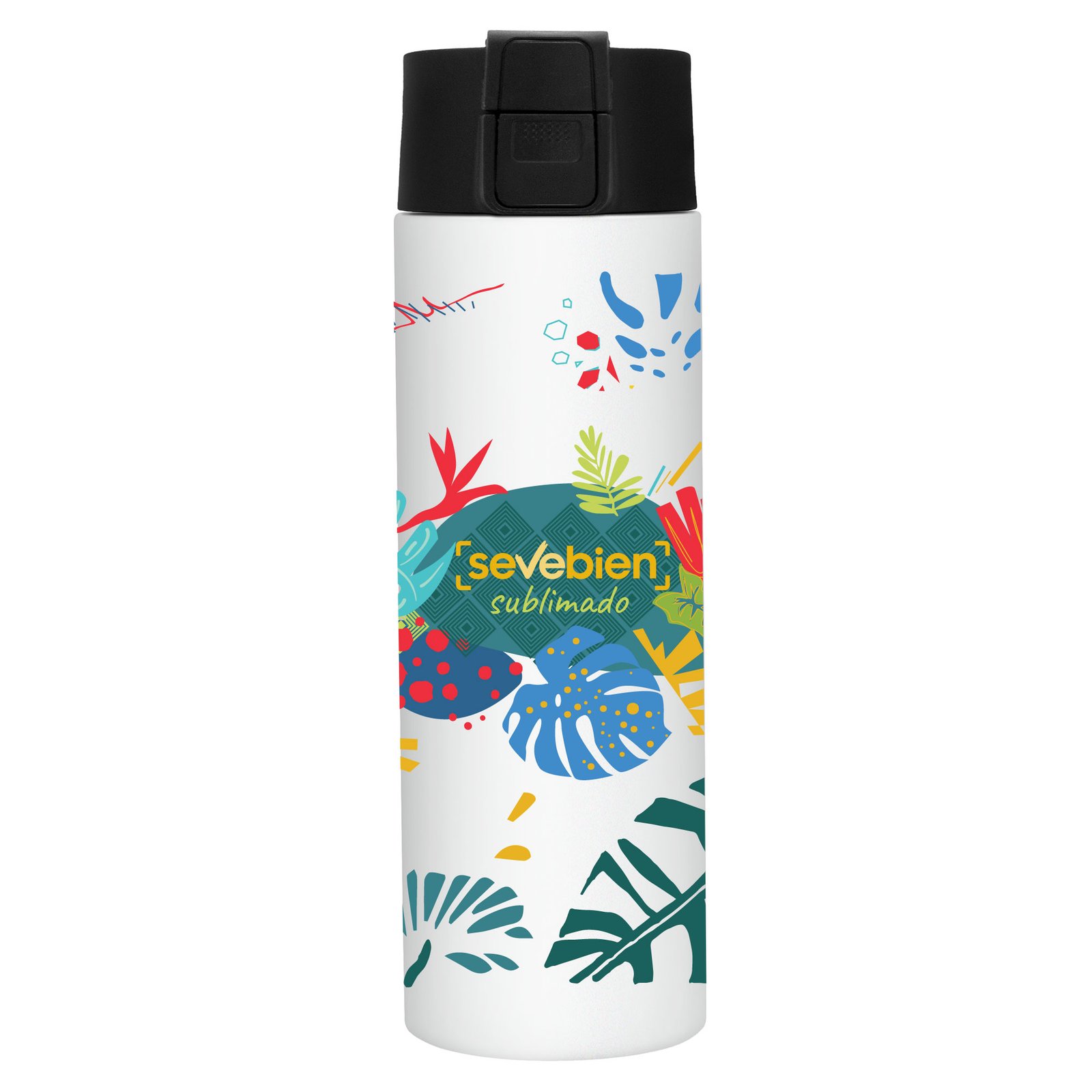 Botella térmica sublimable "ALLY" (SKU T689) para regalos corporativos y campañas de empresa. Prioridad comercial en líneas de textil, sublimación y DTF para branding corporativo. Ø 7 cm x 23 cm. Acero inoxidable. Capacidad 450 ml. Botella doble pared, sellada al vacío. Interior de acero 304 y exterior de acero 201. Pintura color blanco brillante apta para sublimado. Tapa en polipropileno con traba de seguridad y botón pulsador de apertura. Mantiene hasta 8 hs la temperatura de las bebidas calientes y hasta 12 hs la de las bebidas frías. Presentación en caja de regalo kraft. Cotiza formato corporativo con personalización de logo y cobertura en Chile.