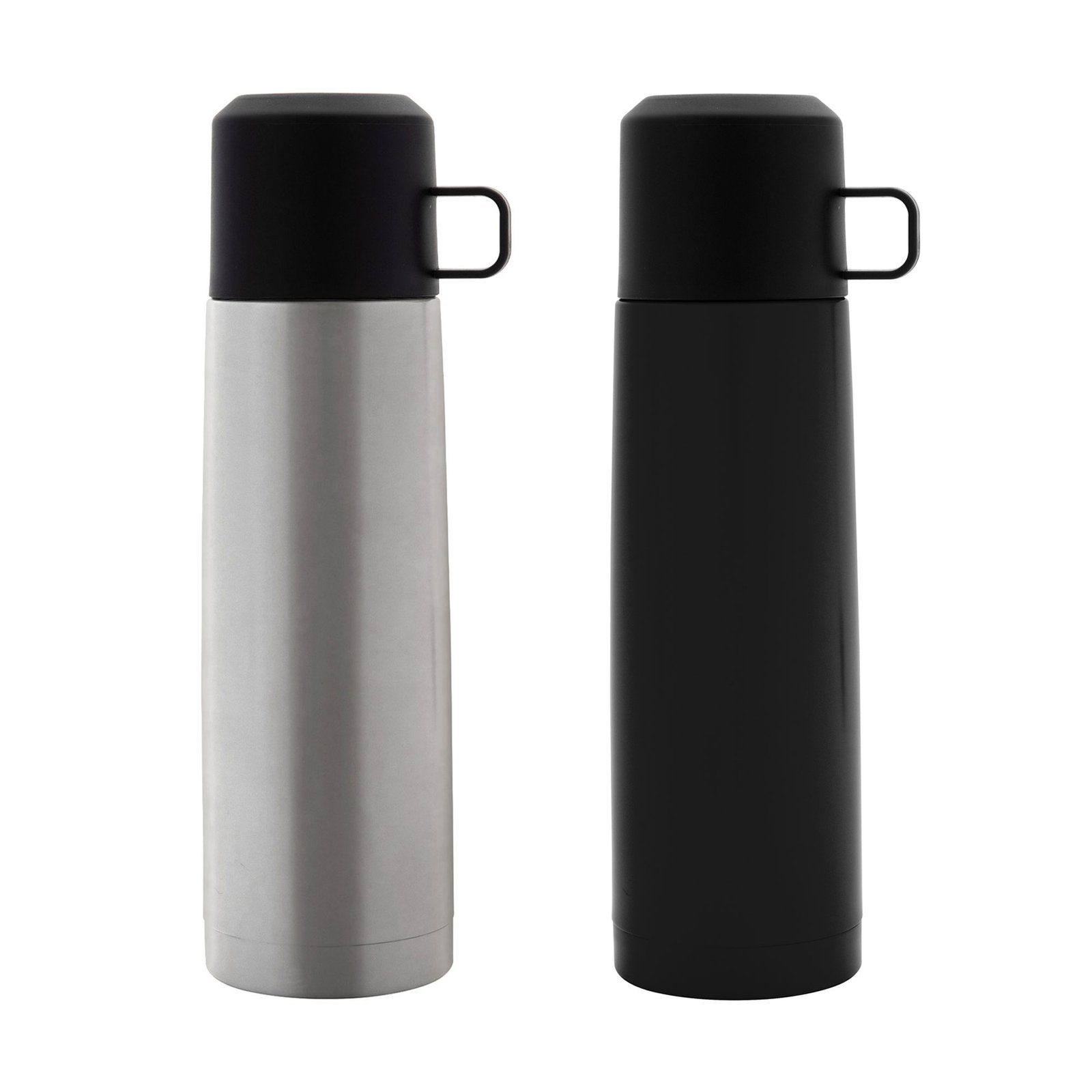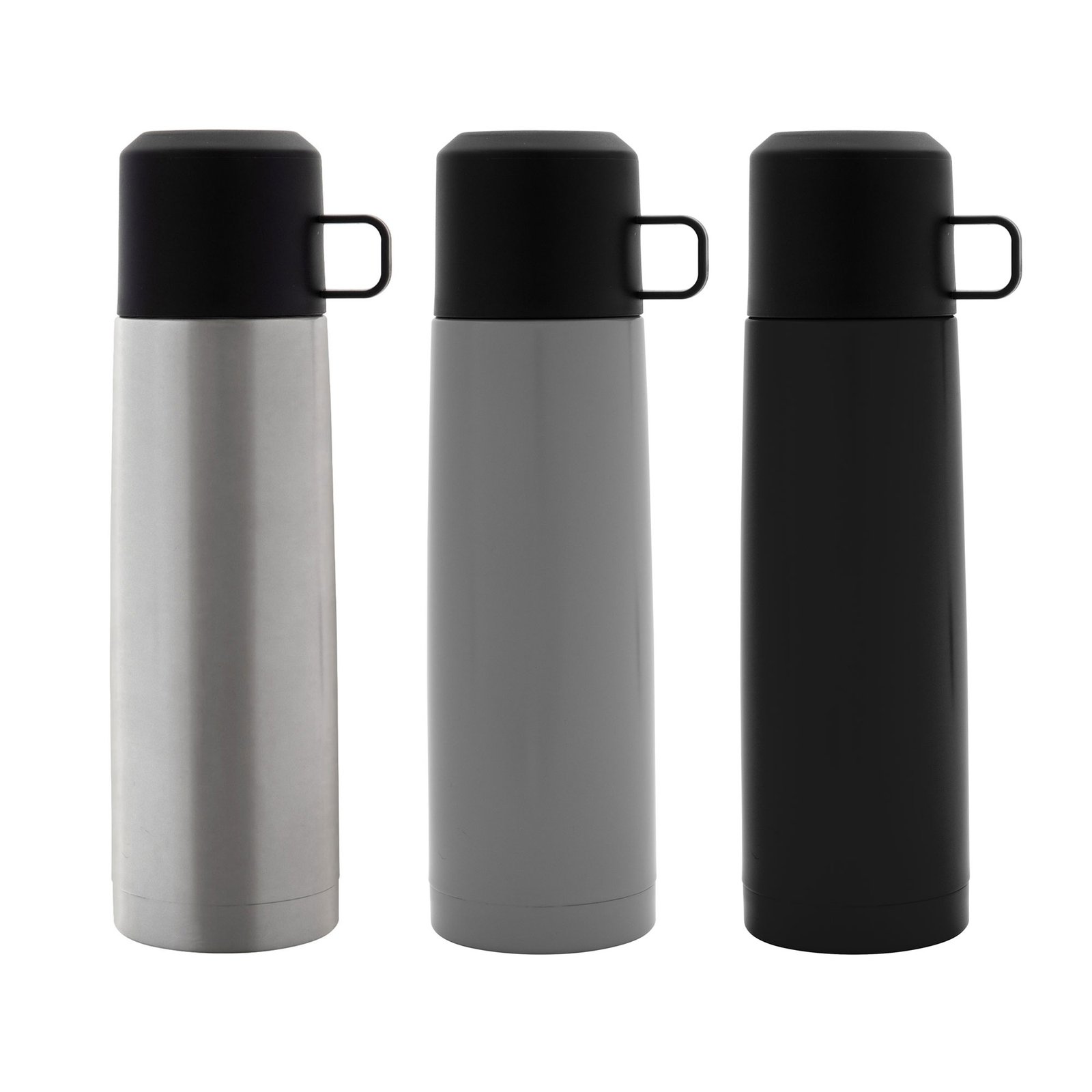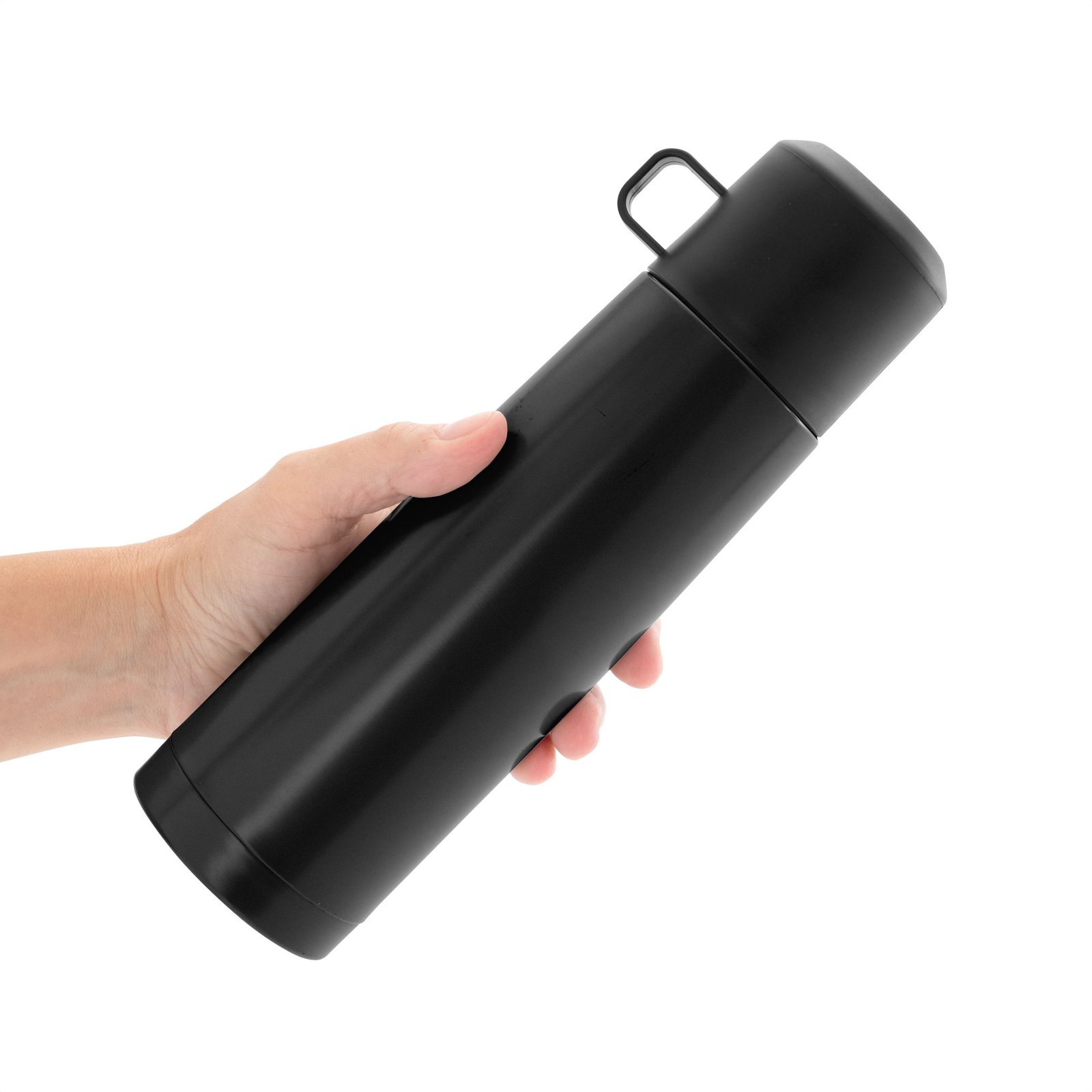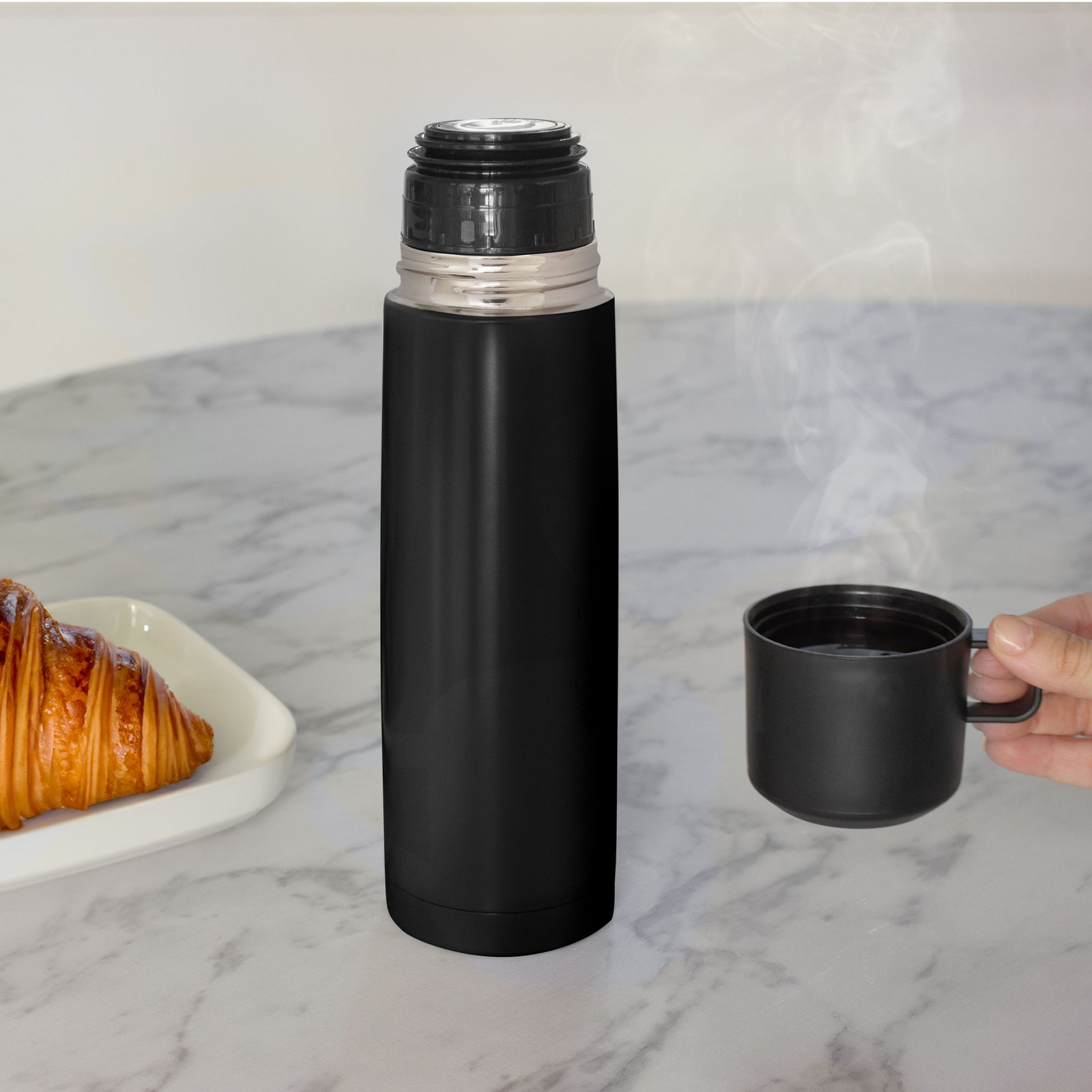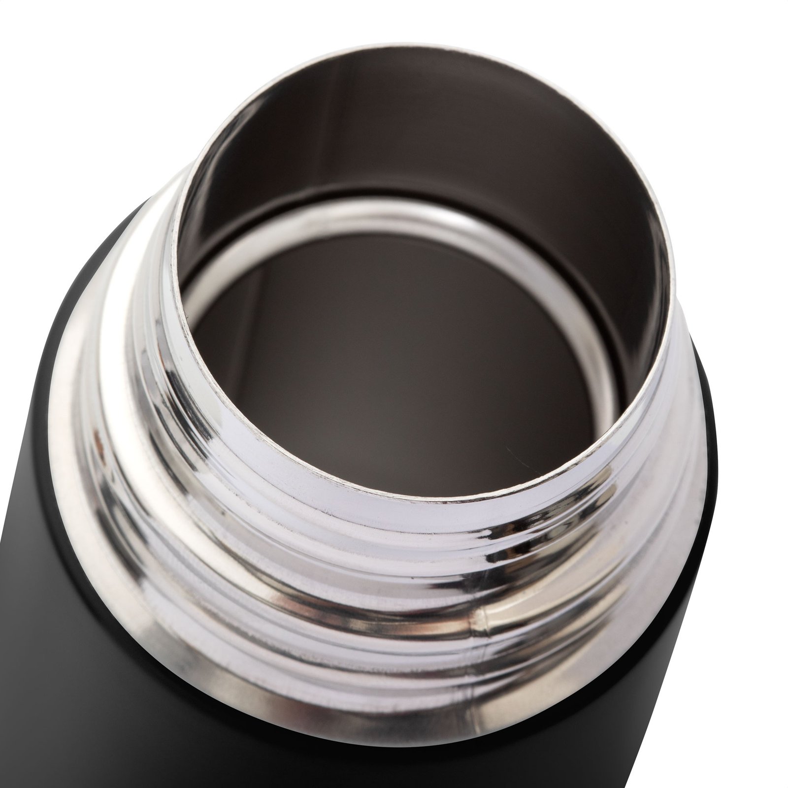 Termo "POTTER" (SKU T737) para regalos corporativos y campañas de empresa. Compatible con estrategias de regalos corporativos, incluyendo soluciones en textil, sublimación y DTF. Disfruta de cada sorbo, caliente o frío.Termo con doble pared sellado al vacío. Tecnología vacuum. Acero inoxidable 304 interior / 201 exterior. Tapa y taza plásticas en color negro. Pintura acabado mate. Mantiene hasta 6 hs la temperatura de las bebidas calientes y hasta 10 hs la de las bebidas frías.Medidas: Ø 7 x 24 cm Capacidad: 500 ml. Materiales: Acero inoxidable y Polipropileno. Presentación: en caja de regalo Kraft. Cotiza formato corporativo con personalización de logo y cobertura en Chile.