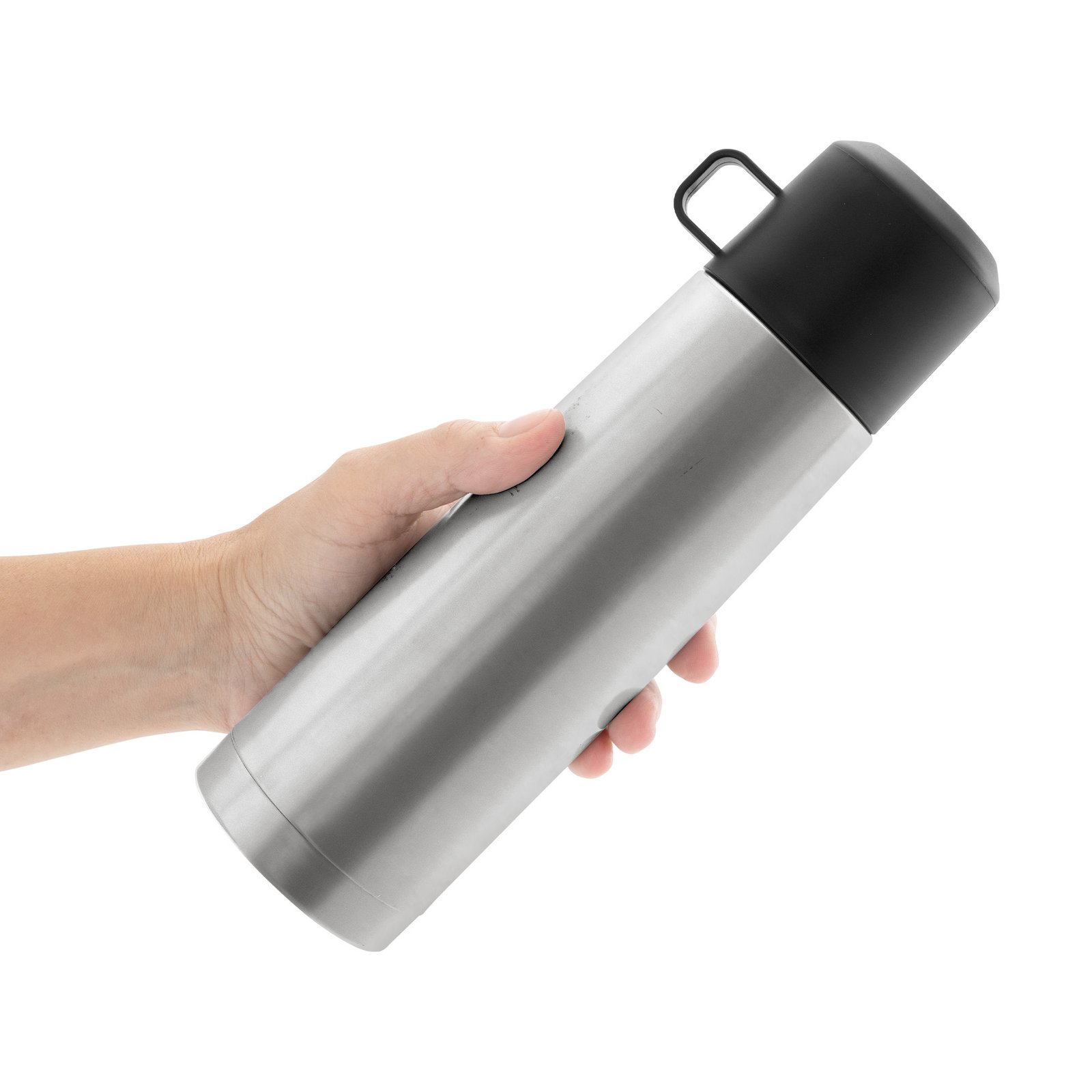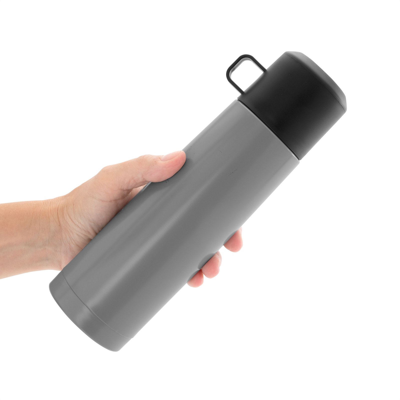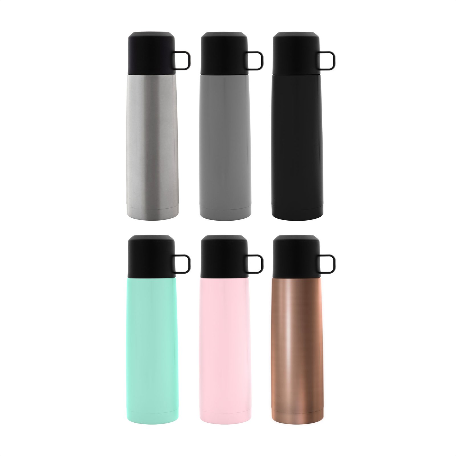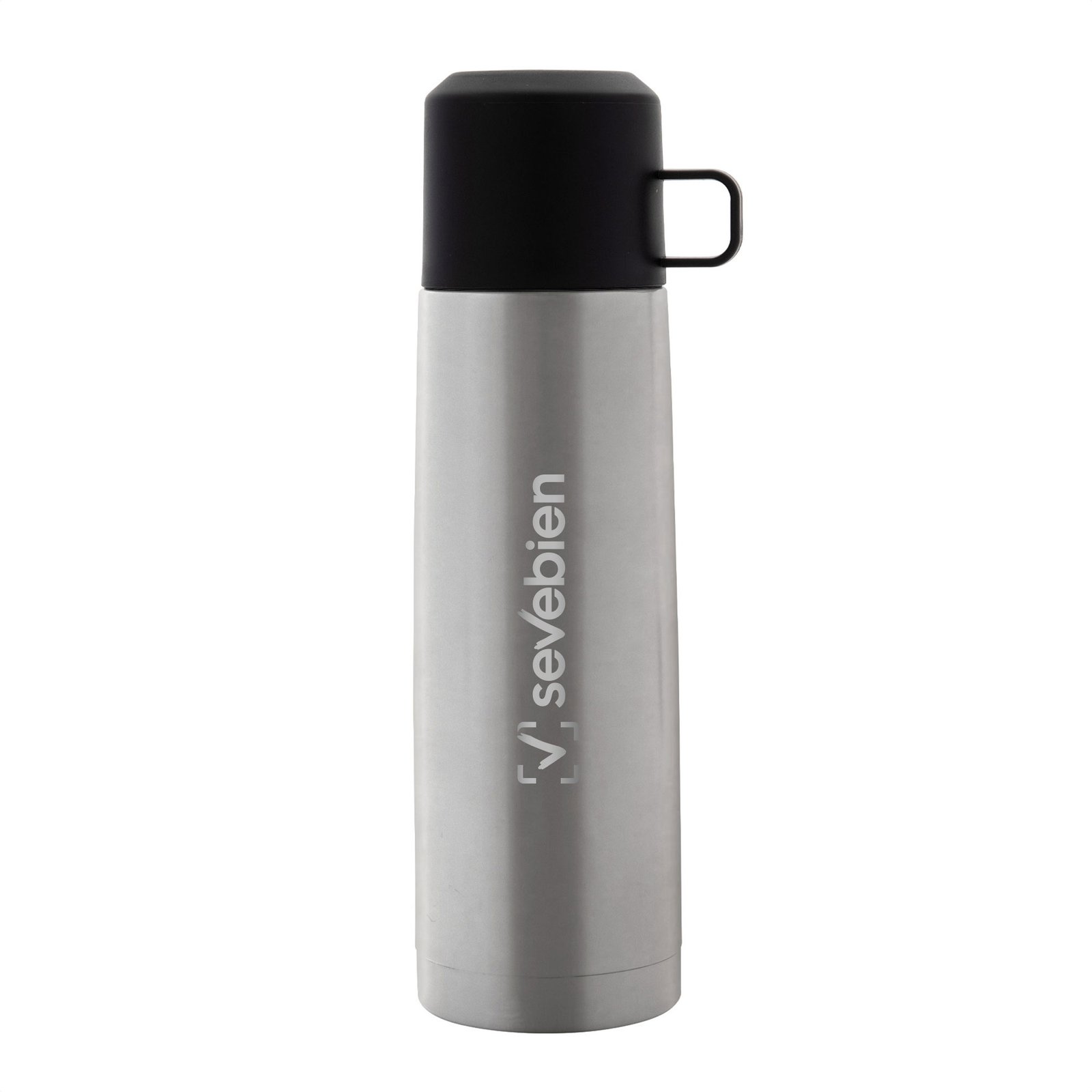 Termo "POTTER" (SKU T737) para regalos corporativos y campañas de empresa. Compatible con estrategias de regalos corporativos, incluyendo soluciones en textil, sublimación y DTF. Disfruta de cada sorbo, caliente o frío.Termo con doble pared sellado al vacío. Tecnología vacuum. Acero inoxidable 304 interior / 201 exterior. Tapa y taza plásticas en color negro. Pintura acabado mate. Mantiene hasta 6 hs la temperatura de las bebidas calientes y hasta 10 hs la de las bebidas frías.Medidas: Ø 7 x 24 cm Capacidad: 500 ml. Materiales: Acero inoxidable y Polipropileno. Presentación: en caja de regalo Kraft. Cotiza formato corporativo con personalización de logo y cobertura en Chile.