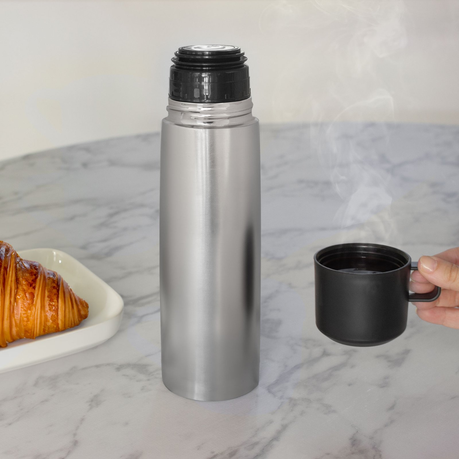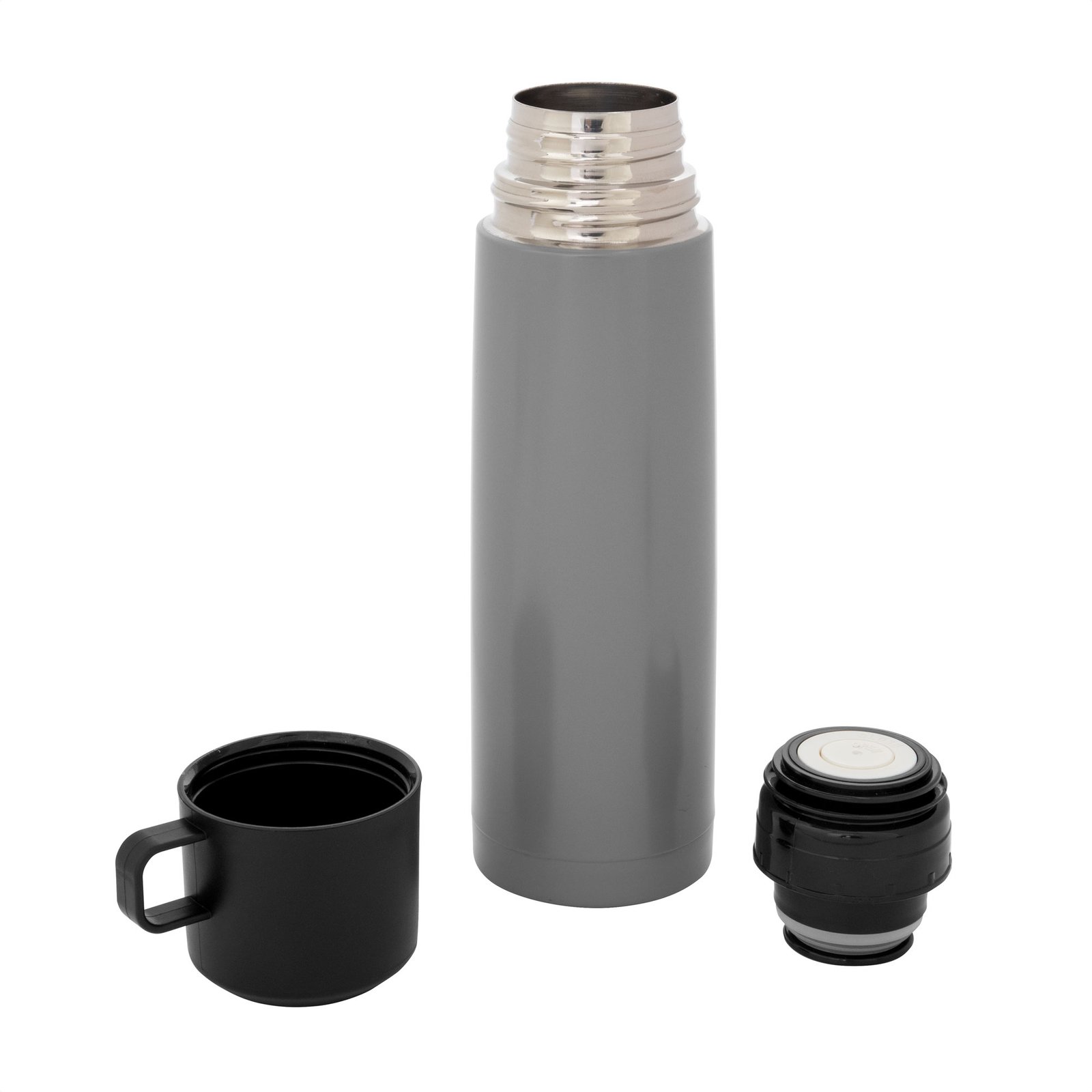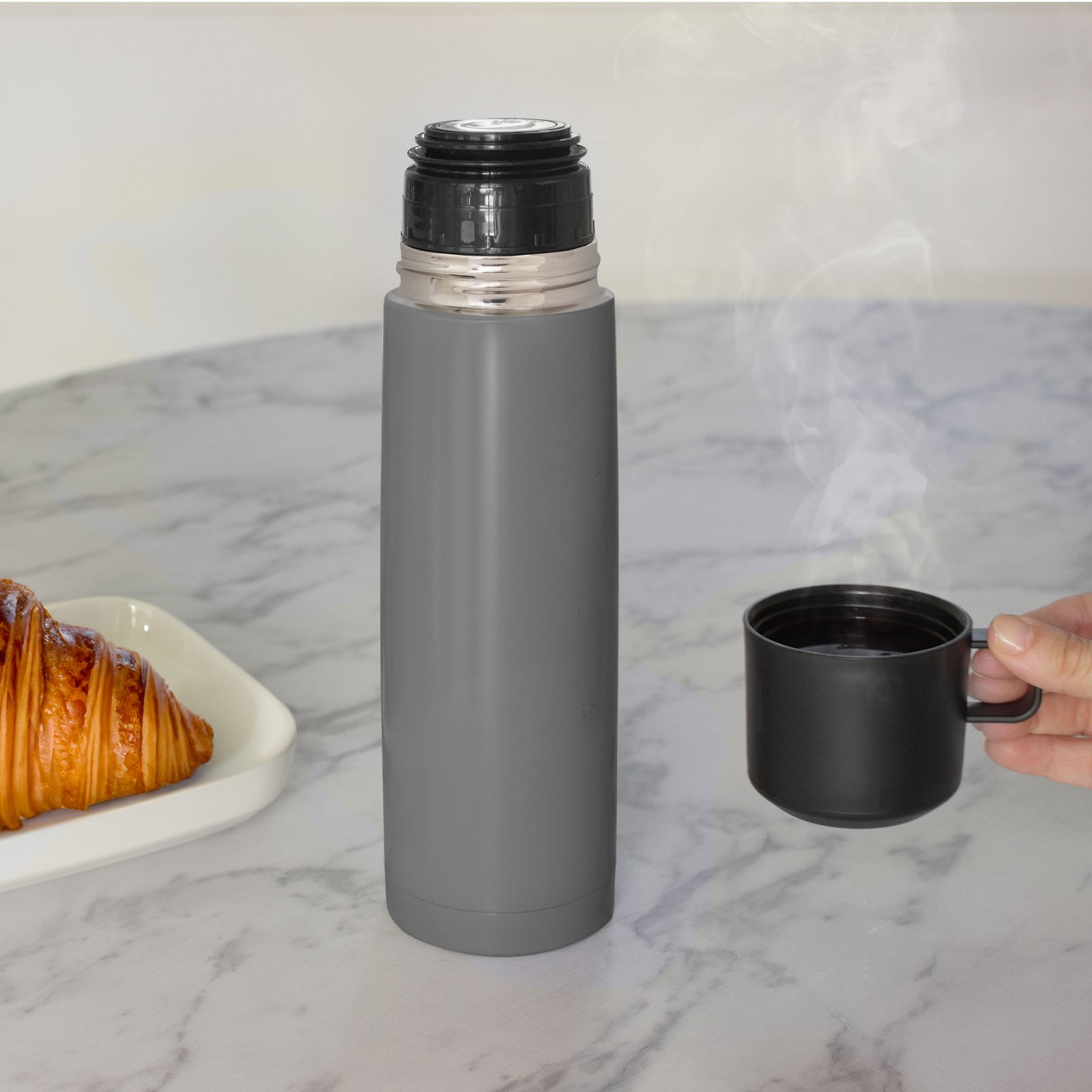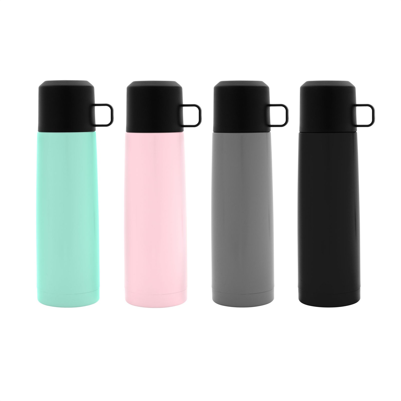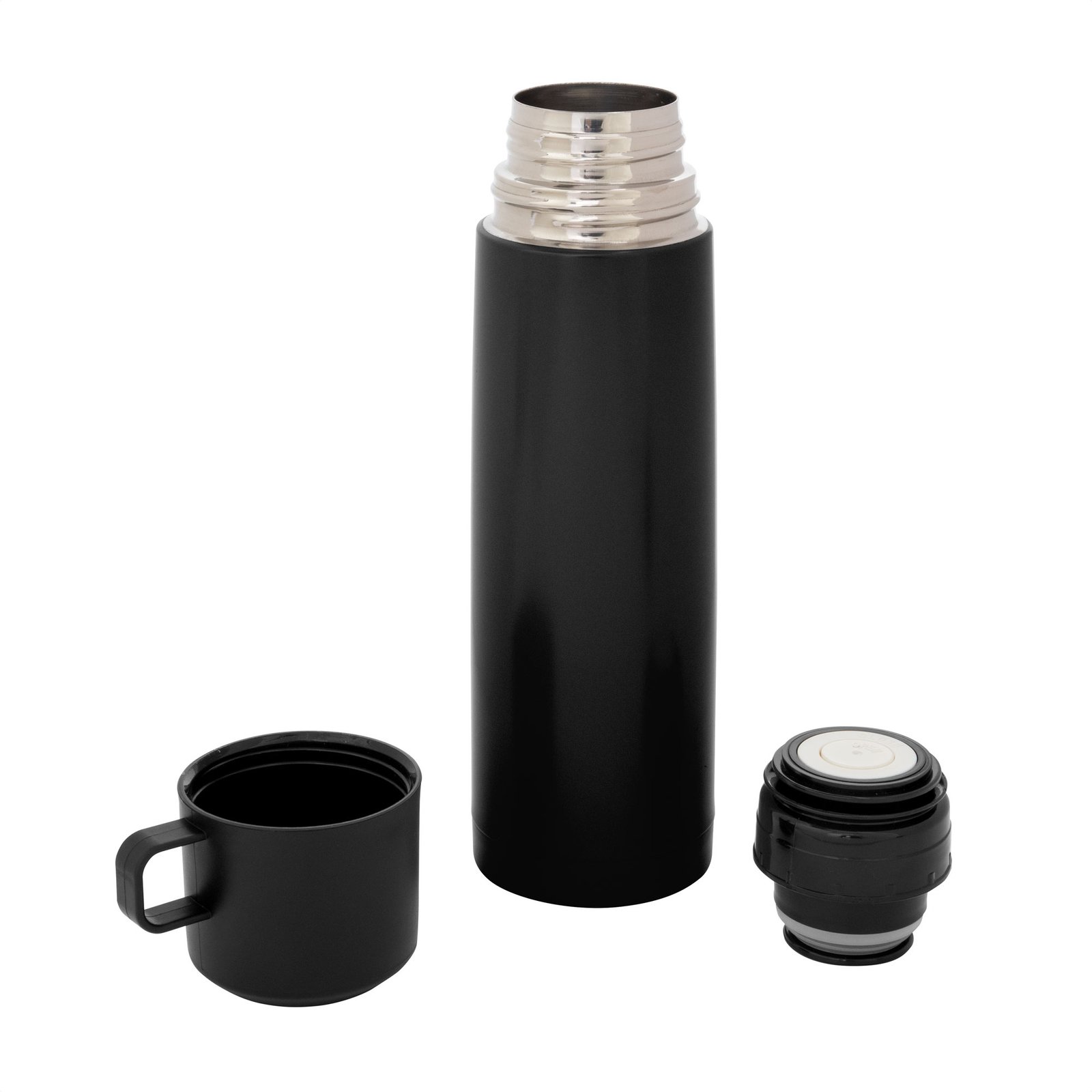 Termo "POTTER" (SKU T737) para regalos corporativos y campañas de empresa. Compatible con estrategias de regalos corporativos, incluyendo soluciones en textil, sublimación y DTF. Disfruta de cada sorbo, caliente o frío.Termo con doble pared sellado al vacío. Tecnología vacuum. Acero inoxidable 304 interior / 201 exterior. Tapa y taza plásticas en color negro. Pintura acabado mate. Mantiene hasta 6 hs la temperatura de las bebidas calientes y hasta 10 hs la de las bebidas frías.Medidas: Ø 7 x 24 cm Capacidad: 500 ml. Materiales: Acero inoxidable y Polipropileno. Presentación: en caja de regalo Kraft. Cotiza formato corporativo con personalización de logo y cobertura en Chile.