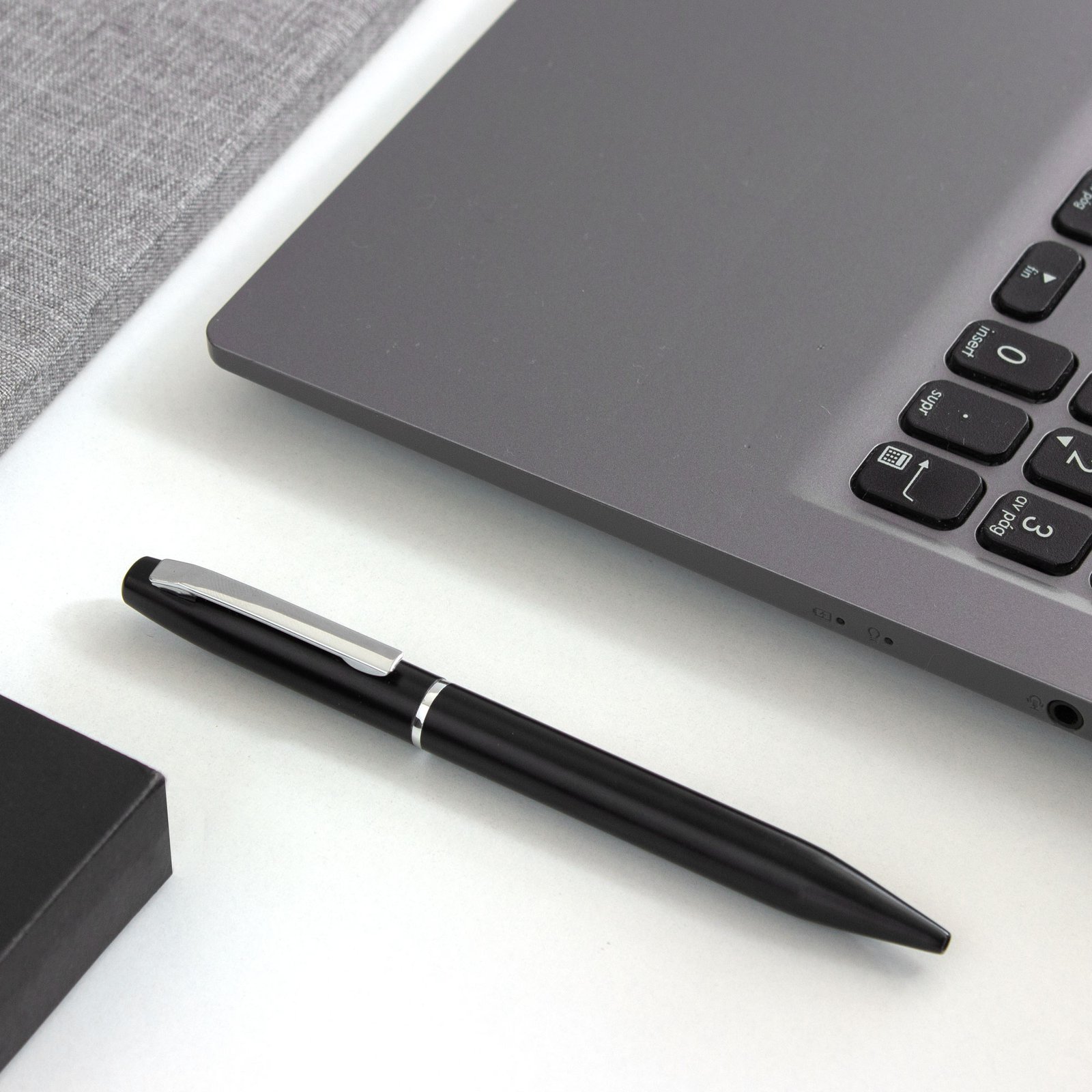Bolígrafo "MORK" TINTA AZUL (SKU BP331-TA) para regalos corporativos y campañas de empresa. Compatible con estrategias de regalos corporativos, incluyendo soluciones en textil, sublimación y DTF. Transmite éxito en cada trazo.Bolígrafo con apertura giratoria. Cuerpo metálico en negro mate. Cuerpo de aluminio reciclado. Destape electroplateado en la parte superior. Recarga metálica. Clip y anillos metálicos color plata. Medidas: 13,3 cm. Material: Aluminio reciclado y hierro. Peso: 22 g. Tinta: azul Presentación: en caja de regalo negra. Cotiza formato corporativo con personalización de logo y cobertura en Chile.