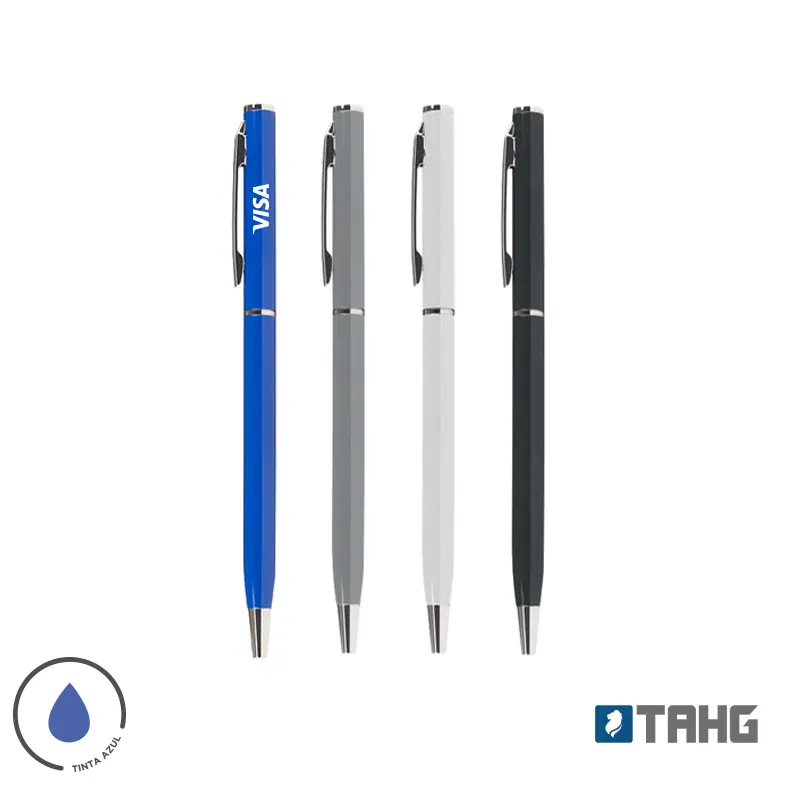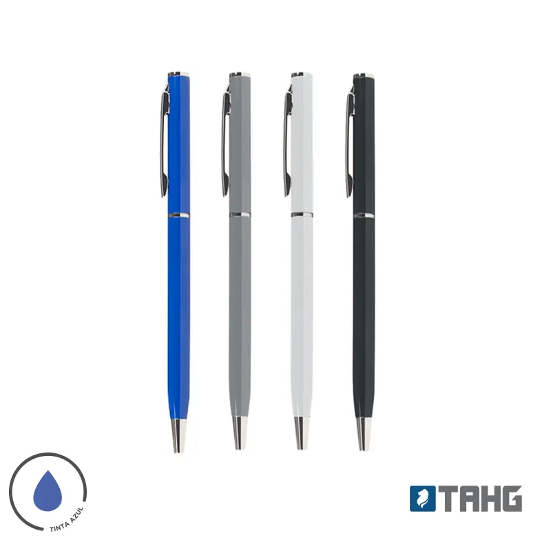 Lapiz Slim (SKU 8) para regalos corporativos y campañas de empresa. Compatible con estrategias de regalos corporativos, incluyendo soluciones en textil, sublimación y DTF. Lápiz de metal. Diseño elegante. Con clip. Apertura medio giro. Tinta azul Cotiza formato corporativo con personalización de logo y cobertura en Chile.