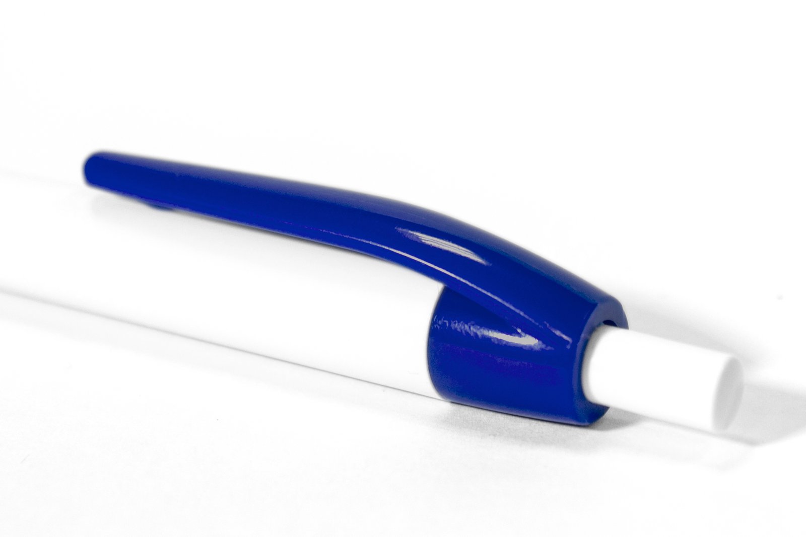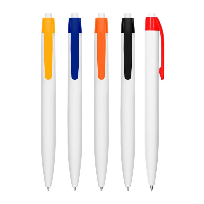 BOLÍGRAFO "BILBO" (SKU BP268-TA) para regalos corporativos y campañas de empresa. Compatible con estrategias de regalos corporativos, incluyendo soluciones en textil, sublimación y DTF. Plástico. Bolígrafo con pulsador. Cuerpo plástico de color blanco y clip de color. Tinta azul Cotiza formato corporativo con personalización de logo y cobertura en Chile.
