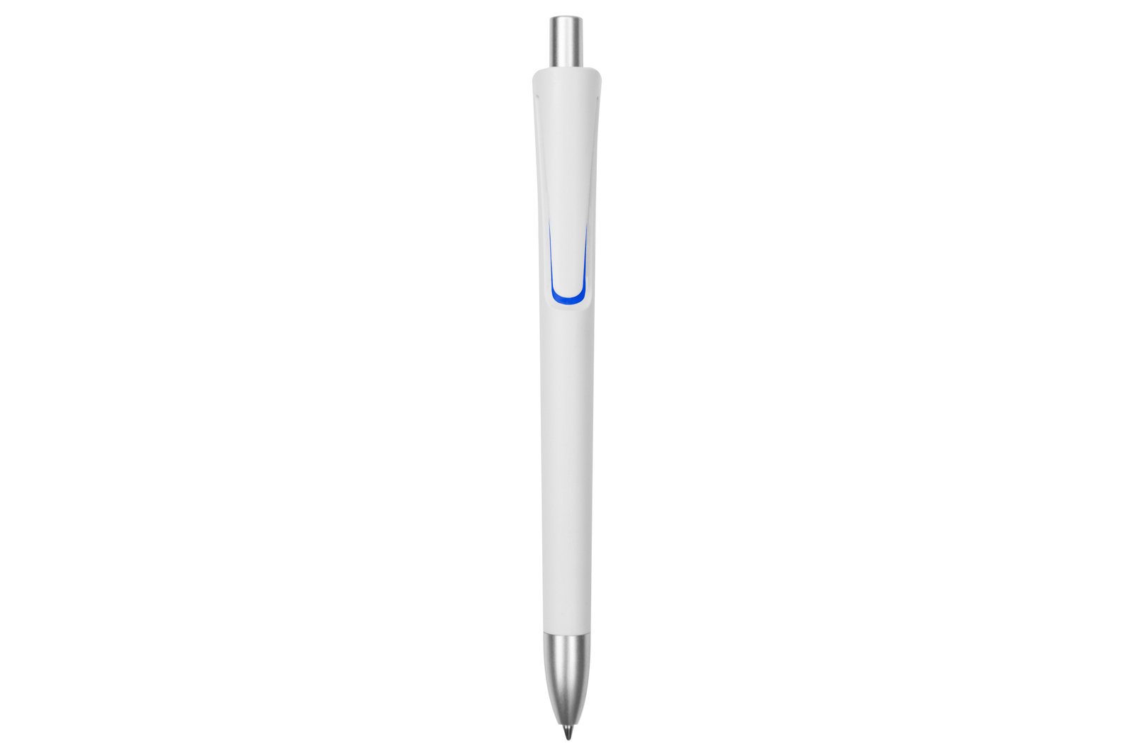 BOLÍGRAFO "GOODWELL" TINTA AZUL (SKU BP257-TA) para regalos corporativos y campañas de empresa. Compatible con estrategias de regalos corporativos, incluyendo soluciones en textil, sublimación y DTF. Plástico. Cuerpo blanco mate. Clip, punta y pulsador color plata. Debajo del clip detalle de color. Tinta azul. Cotiza formato corporativo con personalización de logo y cobertura en Chile.