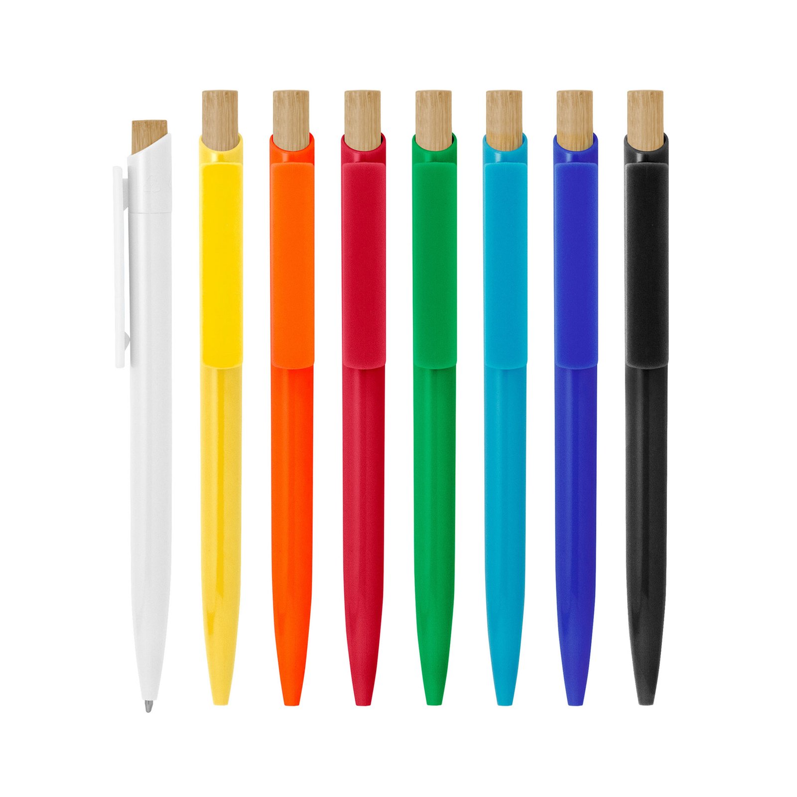 Bolígrafo "OBLIK" (SKU BP330-TA) para regalos corporativos y campañas de empresa. Compatible con estrategias de regalos corporativos, incluyendo soluciones en textil, sublimación y DTF. Combina estilo y conciencia ecológica.Bolígrafo retráctil. Cuerpo de diferentes colores. Pulsador de bambú. Clip del mismo color del cuerpo. Medidas: 1 x 14 cm. Materiales: Plástico ABS reciclado y bambú Peso: 6,6 g. Tinta: azul Cotiza formato corporativo con personalización de logo y cobertura en Chile.