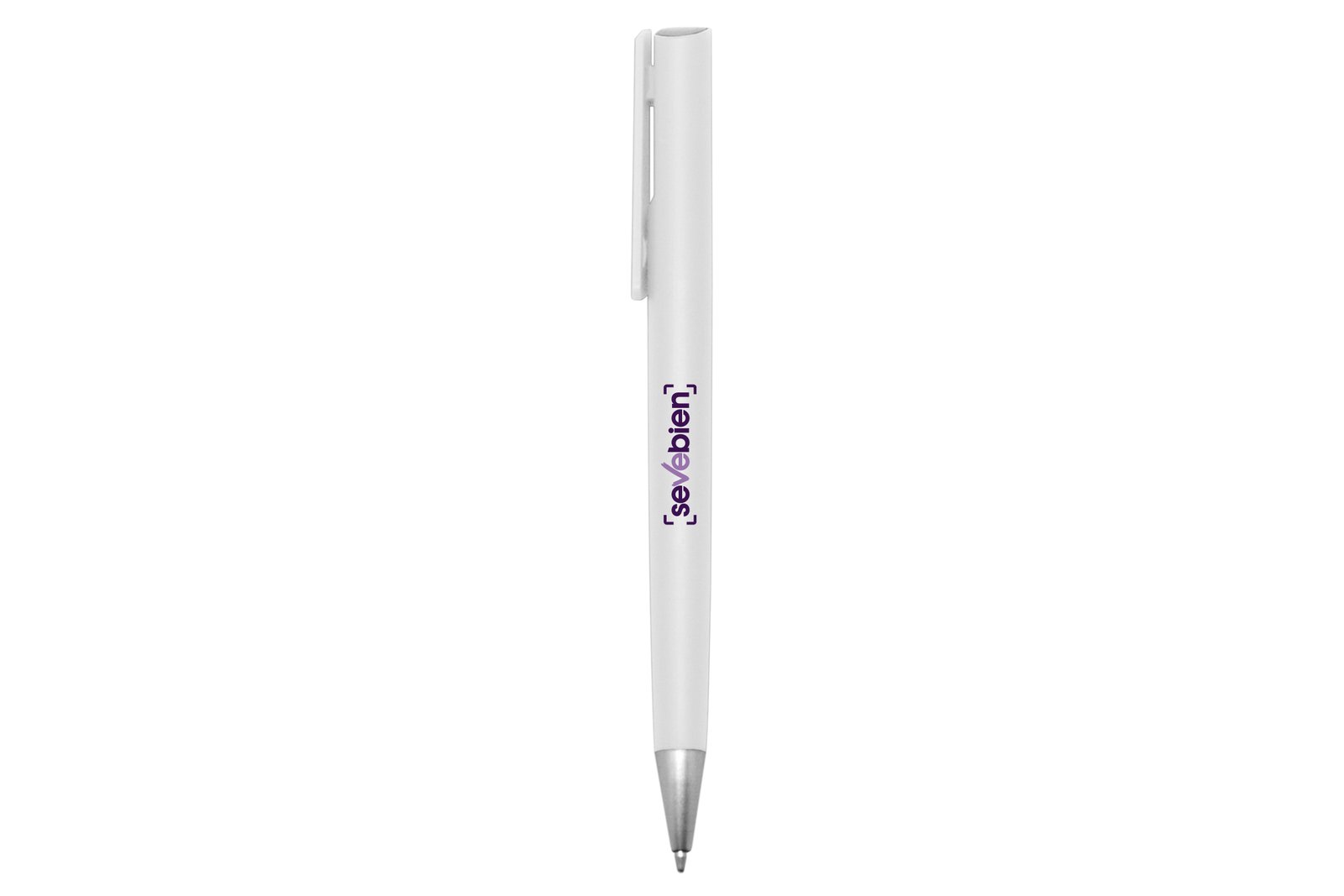 Bolígrafo "Perso" (SKU BP285) para regalos corporativos y campañas de empresa. Compatible con estrategias de regalos corporativos, incluyendo soluciones en textil, sublimación y DTF. Plástico. Cuerpo color. Clip pulsador y puntera color plata. Tinta negra Cotiza formato corporativo con personalización de logo y cobertura en Chile.