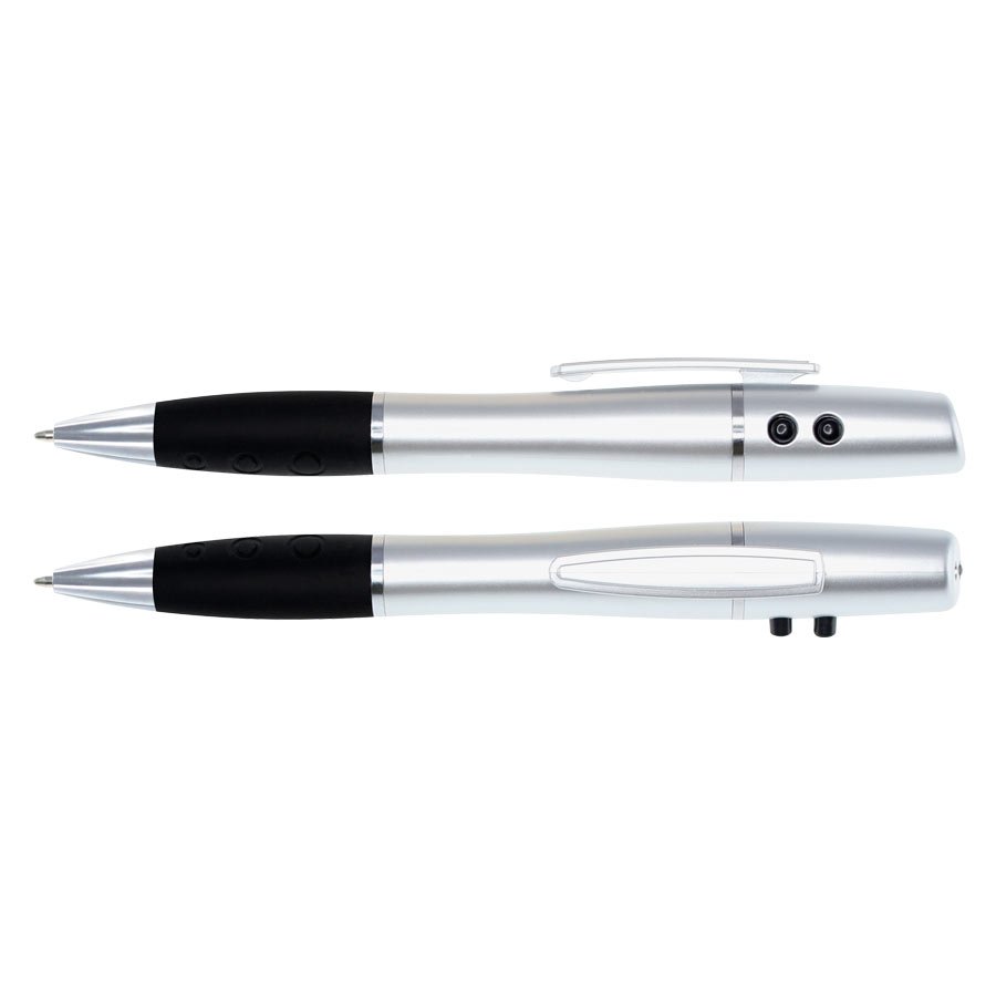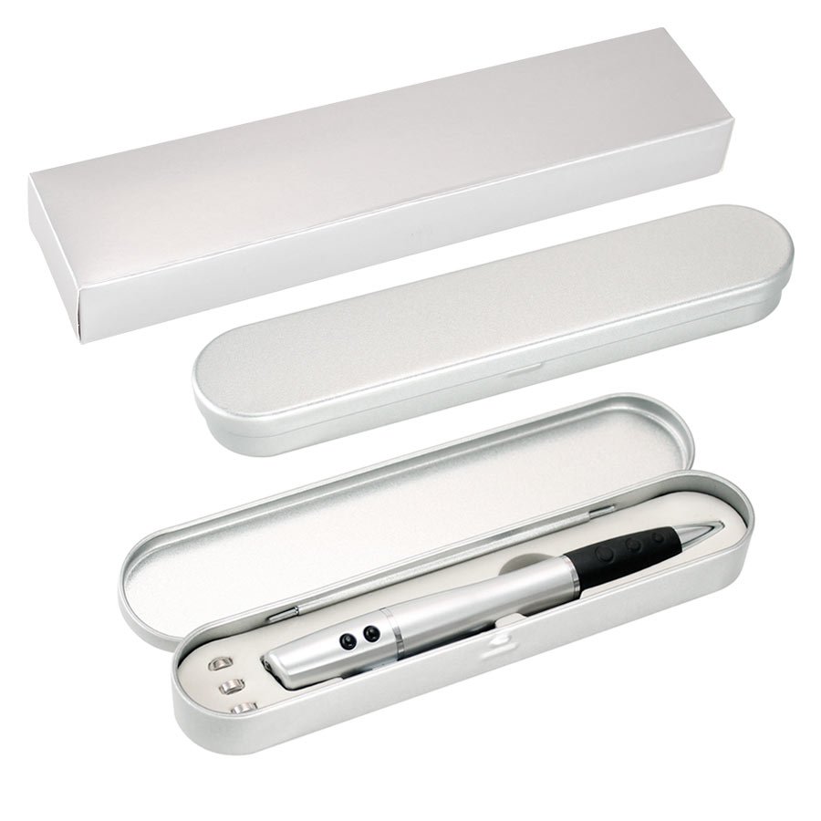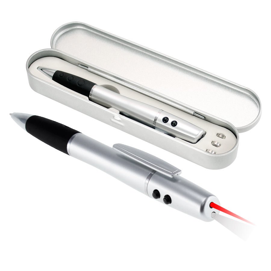 Bolígrafo Plástico 3 en 1 (SKU L87) para regalos corporativos y campañas de empresa. Compatible con estrategias de regalos corporativos, incluyendo soluciones en textil, sublimación y DTF. Bolígrafo plástico multi-función 3 en 1. Incluye bolígrafo, linterna LED y puntero láser. Escritura negra. Presentación en estuche metálico y caja plateada de cartón. • Tamaño: BolÃgrafo 14 x 1.3 cm / Caja 18 x 4 x 2 cm. • Colores: • Sugerencia: Serigrafía. • Presentación: En estuche metálico y caja plateada de cartón. • Pilas: Usa 3 pilas tipo botón (incluidas). Cotiza formato corporativo con personalización de logo y cobertura en Chile.
