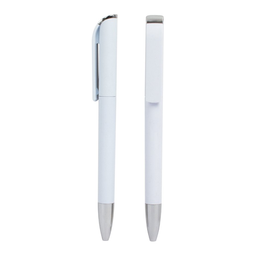 Bolígrafo Plástico Angel (SKU L96) para regalos corporativos y campañas de empresa. Compatible con estrategias de regalos corporativos, incluyendo soluciones en textil, sublimación y DTF. Bolígrafo blanco "Angel", con clip ancho plano, especial para imprimir sobre él. Escritura azul. • Tamaño: 14 x Ø 1 cm. • Colores: Blanco(01), Azul(02), Rojo(03), Gris (07), Negro (08), Azul marino (20). • Sugerencia: Cotiza formato corporativo con personalización de logo y cobertura en Chile.