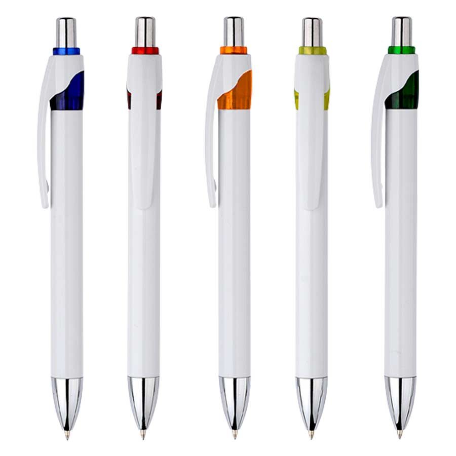 Bolígrafo Plástico Masai (SKU L11) para regalos corporativos y campañas de empresa. Compatible con estrategias de regalos corporativos, incluyendo soluciones en textil, sublimación y DTF. Bolígrafo plástico cuerpo blanco modelo "Masai". • Tamaño: • Colores:Azul (02), Rojo (03), Naranjo (04), Amarillo (05), Verde (06). • Sugerencia: Cotiza formato corporativo con personalización de logo y cobertura en Chile.