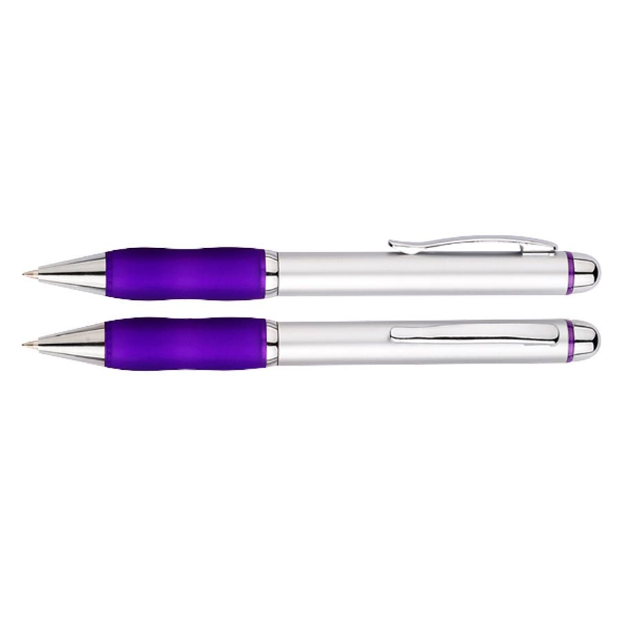 Bolígrafo Plástico Qasar Silver (SKU L45) para regalos corporativos y campañas de empresa. Compatible con estrategias de regalos corporativos, incluyendo soluciones en textil, sublimación y DTF. Bolígrafo plástico metalizado "Qasar" con goma de color. Escritura azul. • Tamaño: • Colores:Azul (02), Rojo (03), Naranjo (04), Amarillo (05), Verde (06), Negro (08), Morado (25). • Sugerencia: Cotiza formato corporativo con personalización de logo y cobertura en Chile.