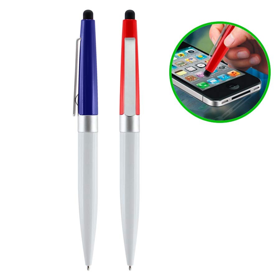 Bolígrafo Biarritz (SKU L120) para regalos corporativos y campañas de empresa. Compatible con estrategias de regalos corporativos, incluyendo soluciones en textil, sublimación y DTF. Bolígrafo modelo "Biarritz", mitad metálico/mitad plástico, incluye puntero Touch-Screen. Escritura negra. • Tamaño: 15 x 0.9 cm. • Colores:Blanco/Azul (02), Blanco/Rojo (03). • Sugerencia: Sobre sup. metálica blanca, grabado láser / Sobre sup. plástica de color, serigrafía. • Peso: 19.7 g. Cotiza formato corporativo con personalización de logo y cobertura en Chile.