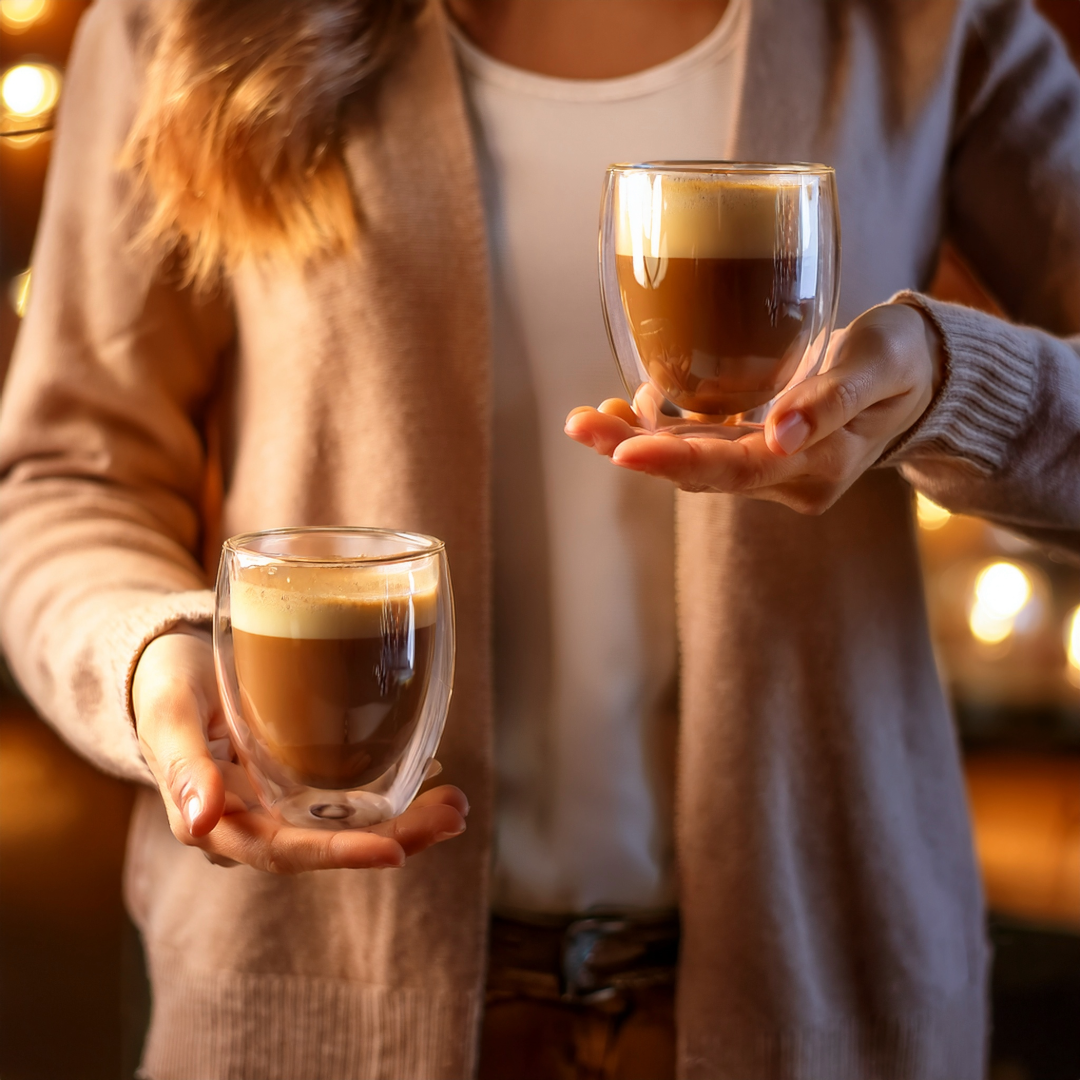 SET DE VASOS DE VIDRIO “DOUBLE” (SKU T549) para regalos corporativos y campañas de empresa. Compatible con estrategias de regalos corporativos, incluyendo soluciones en textil, sublimación y DTF. Ø 8,3 x 10 cm. Capacidad 280 ml cada vaso. Vidrio. Set de vasos doble pared. Apto para bebidas frías y calientes. Presentación en caja de regalo. Cotiza formato corporativo con personalización de logo y cobertura en Chile.