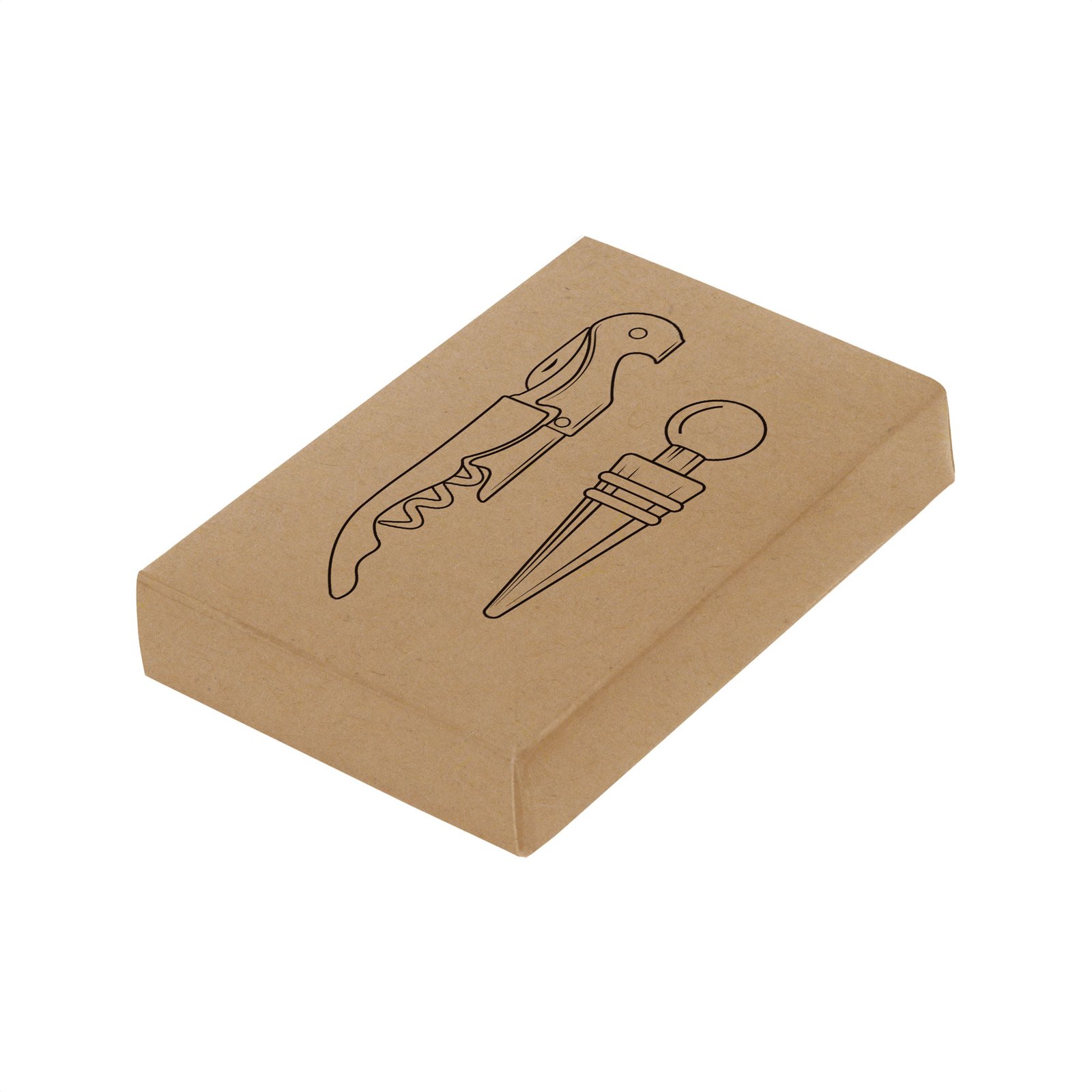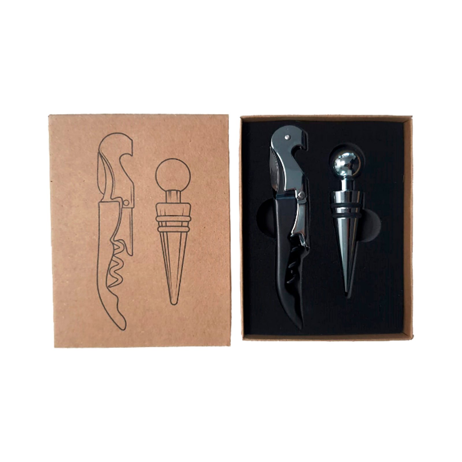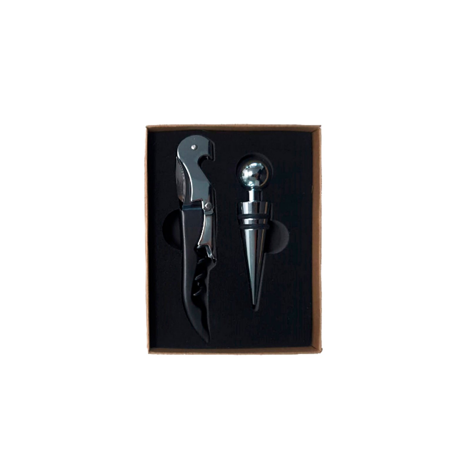SET DE VINOS "MARQUIS" (SKU T489) para regalos corporativos y campañas de empresa. Compatible con estrategias de regalos corporativos, incluyendo soluciones en textil, sublimación y DTF. 13 x 10 x 2,5 cm. Metal. Accesorios para vinos. Sacacorcho y tapón de metal. Estuche de cartón. Presentación en caja de regalo. Cotiza formato corporativo con personalización de logo y cobertura en Chile.