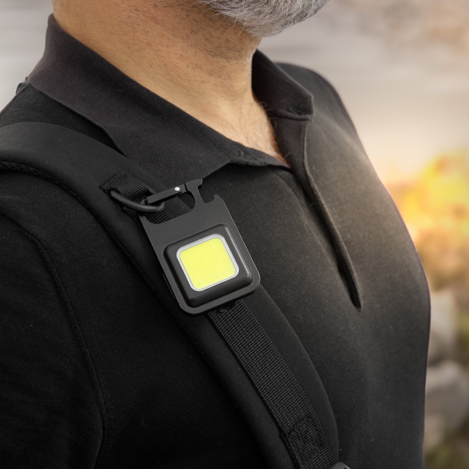 Linterna portátil recargable "ASTRO" (SKU T725) para regalos corporativos y campañas de empresa. Compatible con estrategias de regalos corporativos, incluyendo soluciones en textil, sublimación y DTF. Potente, compacta y moderna.Linterna portátil recargable. Con destapador y mosquetón incorporado. Imán al dorso y soporte con pie para diferentes posiciones. Luz led de alta potencia: 3 intensidades de iluminación (alta, baja e intermitente). Batería recargable de 300 mAh. Luz led indicadora de carga. Puerto USB-C y cable de carga de 30 cm de largo color negro. Medidas: 7,2 x 4,5 x 2 cm. Materiales: Aluminio y ABS. Presentación: en caja de regalo kraft. Cotiza formato corporativo con personalización de logo y cobertura en Chile.