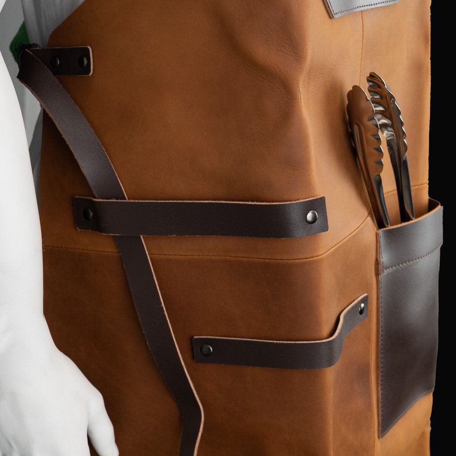 Set Asador de Cuero de Búfalo (SKU H73) para regalos corporativos y campañas de empresa. Compatible con estrategias de regalos corporativos, incluyendo soluciones en textil, sublimación y DTF. Un regalo fuera de serie. Deluxe set de Asador, contiene Pechera de Asador BBQ en cuero curtido, envejecido y suavizado 100% genuino color café cognac, con cintas y porta-accesorios de Cuero 100% genuino color café oscuro. Remaches de acero envejecido y 2 bolsillos delanteros de 22 x 18 cm. y 18 x 14 cm. Rectángulo para logo de 10 x 5 cm. Contiene además largo mitón de Asador BBQ en cuero curtido, envejecido y suavisado 100% genuino color café cognac y tenazas de Acero inoxidable. Presentación en elegante caja de regalo de cartón neg… Cotiza formato corporativo con personalización de logo y cobertura en Chile.