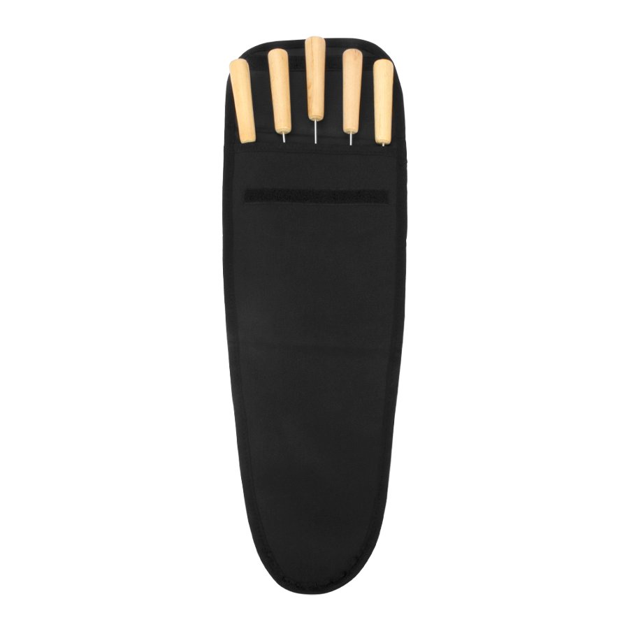 Set de Fierros para Anticuchos (SKU H4) para regalos corporativos y campañas de empresa. Prioridad comercial en líneas de textil, sublimación y DTF para branding corporativo. Set de 5 fierros para anticuchos con mango de madera, en estuche de tela raquelada. Fácil para bordar o imprimir. • Tamaño: 47 x 19 cm (aprox). • Colores:Negro (08). • Sugerencia: • Presentación: En estuche de tela raquelada Cotiza formato corporativo con personalización de logo y cobertura en Chile.