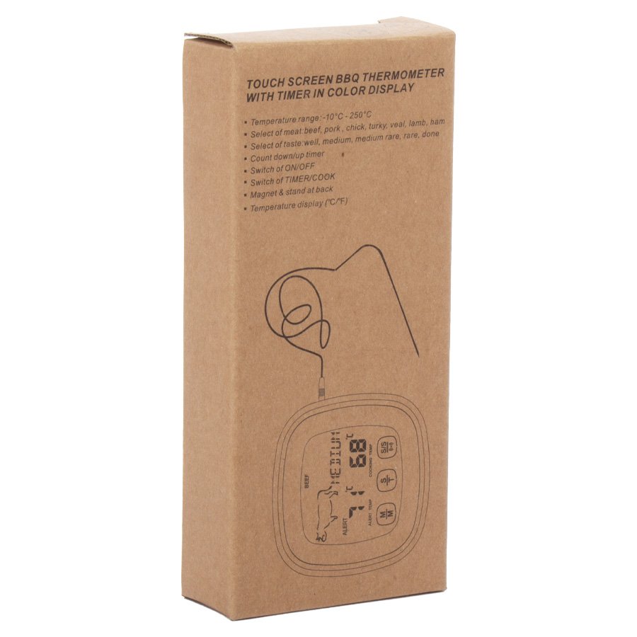 Termómetro Digital para Carne (SKU H51) para regalos corporativos y campañas de empresa. Compatible con estrategias de regalos corporativos, incluyendo soluciones en textil, sublimación y DTF. Termómetro Digital para Carne con timer y funciones en °C o °F. Resistente al calor hasta 250°C (482°F) • Tamaño: 7.3 x 7.3 x 2.5 cm. • Peso: 86g • Colores: Negro con plateado (08). • Sugerencia de Impresión: No apto para impresión • Presentación: Caja de Cartón color natural impresa con instrucciones • Material: Plástico, Acero Cotiza formato corporativo con personalización de logo y cobertura en Chile.
