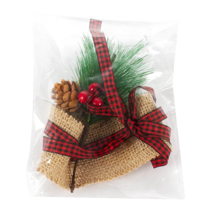 Adorno para vela de B52 (SKU B53) para regalos corporativos y campañas de empresa. Compatible con estrategias de regalos corporativos, incluyendo soluciones en textil, sublimación y DTF. Adorno decorativo de yute, cinta y pino, para vela B52. • Tamaño: 12 x 7 cm. • Colores: Natural (11) • Sugerencia de Impresión: No • Presentación: Bolsa plástica transparente. •Material: Yute y Poliéster Cotiza formato corporativo con personalización de logo y cobertura en Chile.