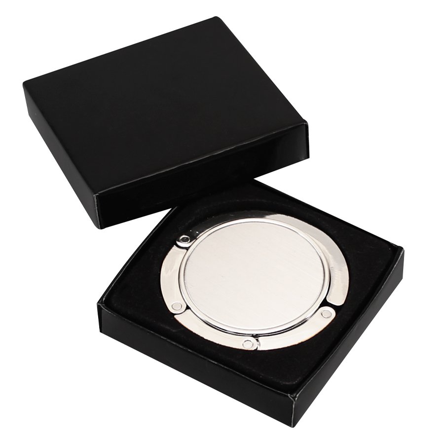 Colgador de Carteras Spiral (SKU B24) para regalos corporativos y campañas de empresa. Compatible con estrategias de regalos corporativos, incluyendo soluciones en textil, sublimación y DTF. Colgador Metálico Grande de sobremesa para Bolsos y Carteras, modelo "Spiral". Presentación en estuche laminado negro con cuna aterciopelada. • Tamaño: Colgador 11.2 x 5.8 x 0.8 cm / Estuche 6.5 x 6.5 x 1.4 cm. • Colores: • Sugerencia: Serigrafía, Pantógrafo. Cotiza formato corporativo con personalización de logo y cobertura en Chile.