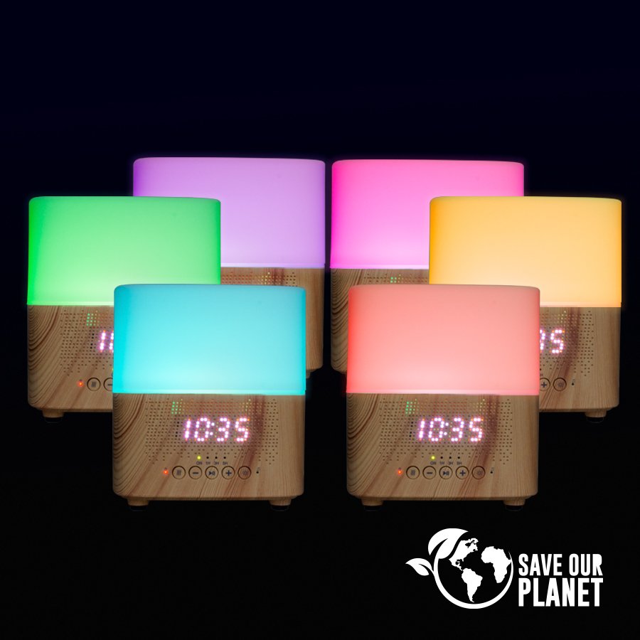 Difusor de Aroma con música (SKU B34) para regalos corporativos y campañas de empresa. Compatible con estrategias de regalos corporativos, incluyendo soluciones en textil, sublimación y DTF. Difusor de Aroma con iluminación, reloj-alarma y parlantes. Contiene conexión Bluetooth para escuchar música desde el celular. Incluye juego de 7 luces LED rotativas de color, o bien se puede fijar cualquier color. Amplio contenido interno para líquido (hasta 300ml). Un producto para disfrutar y relajarse, que no puede faltar en tu hogar u oficina. • Tamaño: 13.2 x 10.3 x 14.6 cm. • Colores:Madera natural vetada / blanco (01) • Sugerencia: Grabado Láser, Serigrafía. • Capacidad: 300ml • Presentación: En caja de regalo de cartón impre… Cotiza formato corporativo con personalización de logo y cobertura en Chile.
