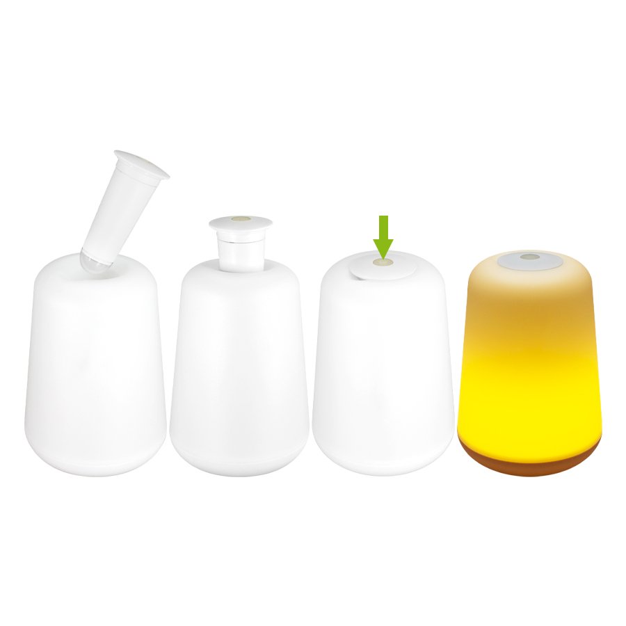 Lámpara LED - Luz Cálida (SKU T16) para regalos corporativos y campañas de empresa. Compatible con estrategias de regalos corporativos, incluyendo soluciones en textil, sublimación y DTF. Lámpara de sobremesa de luz cálida amarilla, con luz LED removible. Usa 3 pilas AAA (no incluidas). Gran superficie de impresión. Presentación en caja de regalo de cartón blanco. • Tamaño: Ø Base 10.6 cm / Ø Tope 8.5 cm / Altura 15 cm aprox. • Colores:Blanco (01). • Sugerencia: Serigrafía. • Presentación: Caja de regalo cartón blanco. • Pilas: Usa 3 pilas AAA (no incluidas). Cotiza formato corporativo con personalización de logo y cobertura en Chile.