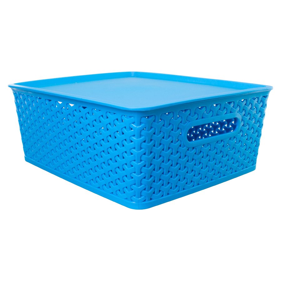 Canasto plástico 15 lt con tapa (SKU W51) para regalos corporativos y campañas de empresa. Compatible con estrategias de regalos corporativos, incluyendo soluciones en textil, sublimación y DTF. Canasto plástico organizador de 36.5 x 30 x 13.5 cm con tapa plástica. Diseño entrelazado tipo ratán. Capacidad 15 lt. • Tamaño: 36.5 x 30 x 13.5 cm • Colores:Azul (02) • Sugerencia: Serigrafía sobre la tapa. • Capacidad: 15 lt • Material: Plástico ABS Cotiza formato corporativo con personalización de logo y cobertura en Chile.