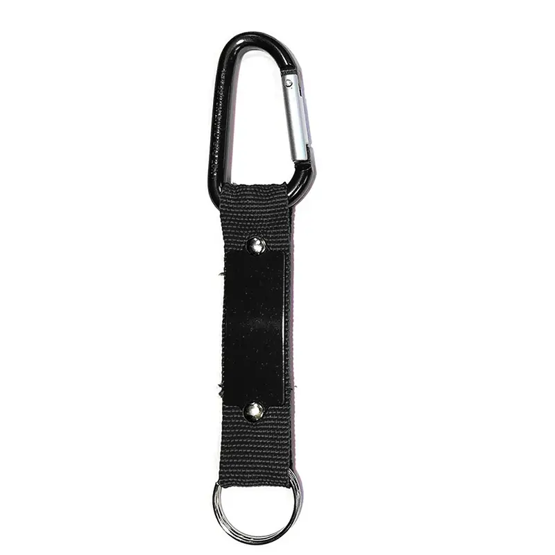 Llavero Carabiner (SKU 40) para regalos corporativos y campañas de empresa. Compatible con estrategias de regalos corporativos, incluyendo soluciones en textil, sublimación y DTF. Llavero tejido de Polyester con un mosquetón de seguridad y una placa de metal para personalizar. La placa puede ser utlizada para domes o grabado láser. Medidas: 13 cm x 3,1 cm incluído el anillo (anillo de 25 mm). TAHG. Cotiza formato corporativo con personalización de logo y cobertura en Chile.