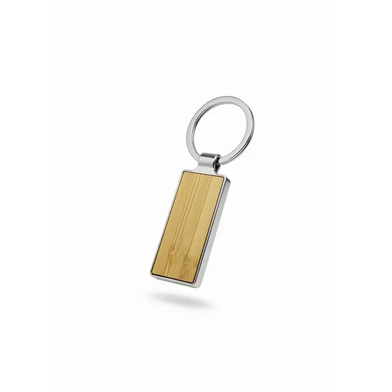 Llavero Line (SKU 486) para regalos corporativos y campañas de empresa. Compatible con estrategias de regalos corporativos, incluyendo soluciones en textil, sublimación y DTF. Llavero metálico con cara de bambú. Fabricado en aleación de zinc y bambú en color natural. Cuenta con anilla duradera y diseño alargado minimalista. Es ideal para merchandising ecológico, campañas publicitarias y uso diario. Tahg Cotiza formato corporativo con personalización de logo y cobertura en Chile.
