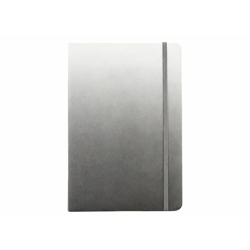 Cuaderno Balayage (SKU 297) para regalos corporativos y campañas de empresa. Compatible con estrategias de regalos corporativos, incluyendo soluciones en textil, sublimación y DTF. Cuaderno con tapa de efecto de color graduado. Cuenta con 80 hojas rayadas color marfil, de 70 gramos cada una. Posee una cinta separadora de color a tono y elástico para cerrarlo. Dimensiones: 21 x 14 x 1,4 cm (Altura x Longitud x Ancho). Cotiza formato corporativo con personalización de logo y cobertura en Chile.